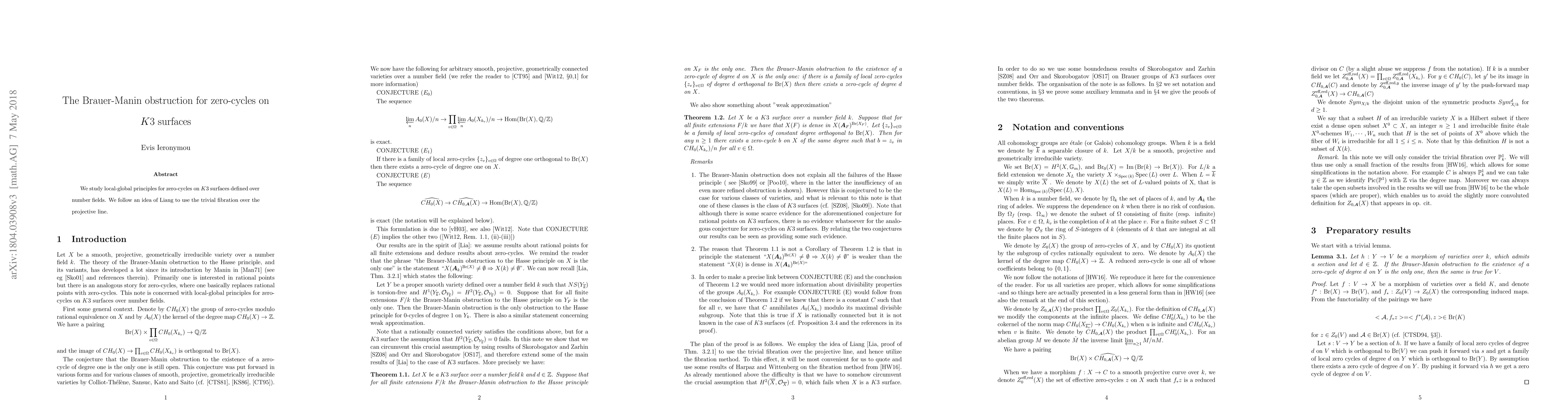 Researchers studied zero-cycles on K3 surfaces, finding a local-global principle using a trivial fibration over the projective line, with implications for number field theory.