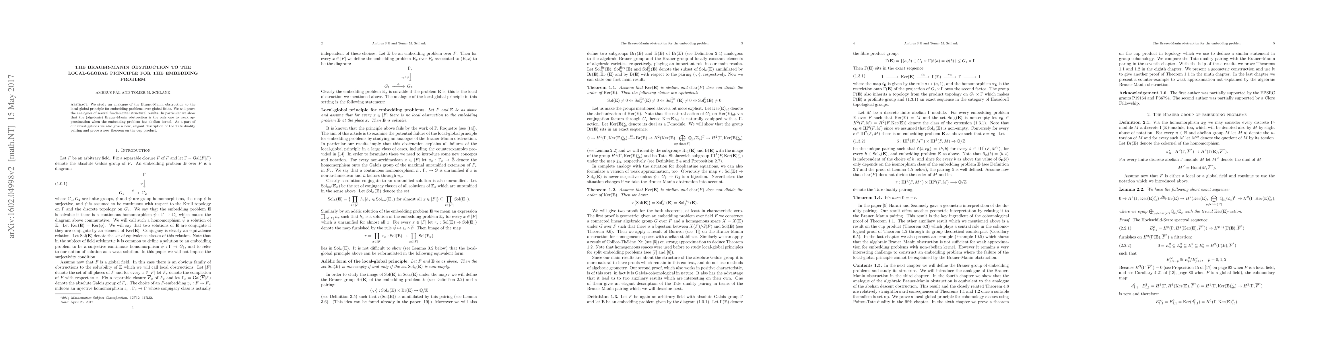 We study an analogue of the Brauer-Manin obstruction to the local-global principle for embedding problems over global fields. We will prove the analogues of several fundamental structural results. In particular we show that the (algebraic) Brauer-Manin obstruction is the only one to weak approximation when the embedding problem has abelian kernel. As a part of our investigations we also give a new, elegant description of the Tate duality pairing and prove a new theorem on the cup product.
