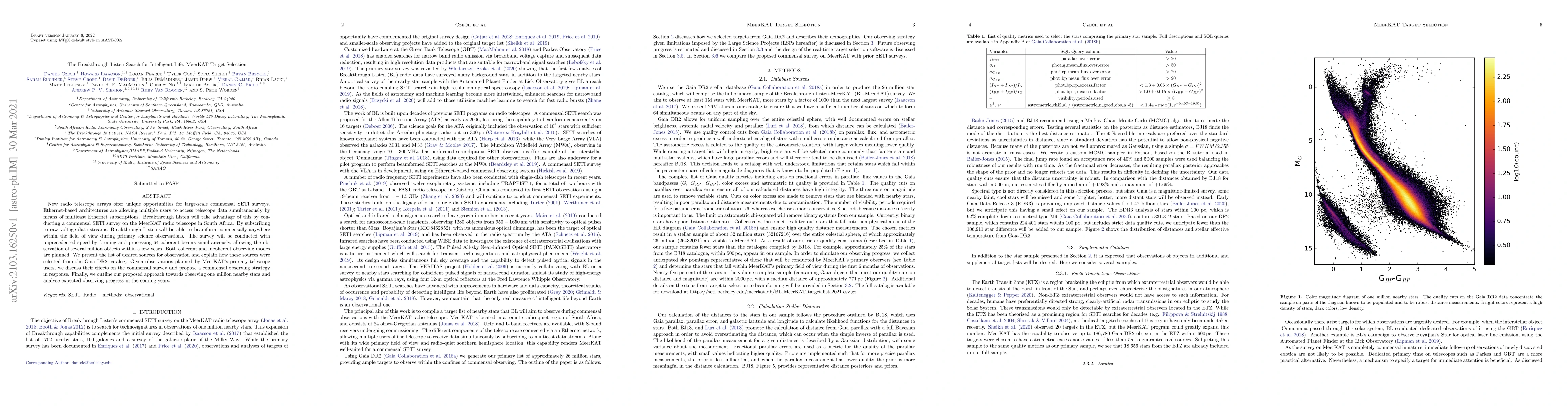 The Breakthrough Listen initiative utilizes the MeerKAT radio telescope for a large-scale commensal SETI survey, leveraging its Ethernet-based architecture to beamform and observe millions of objects rapidly. The survey targets selected nearby stars from the Gaia DR2 catalog, balancing the survey's needs with primary telescope observations.