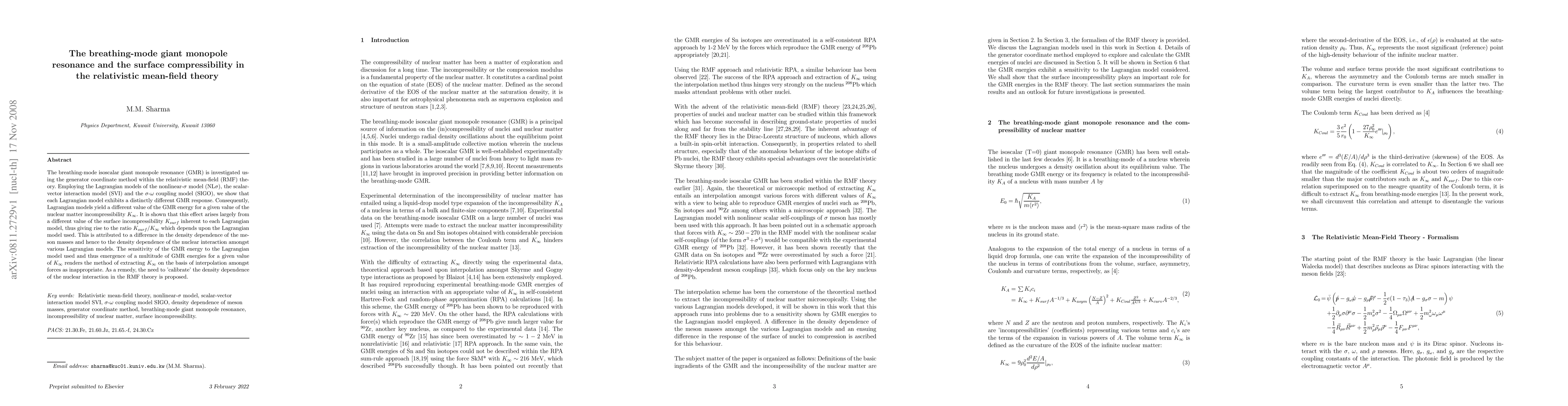 This paper investigates the breathing-mode giant monopole resonance (GMR) in relativistic mean-field theory, showing that different Lagrangian models yield different GMR energies due to variations in surface incompressibility. It concludes that the method of extracting nuclear matter incompressibility $K_\infty$ is flawed and proposes calibrating the density dependence of nuclear interaction in RMF theory as a solution.