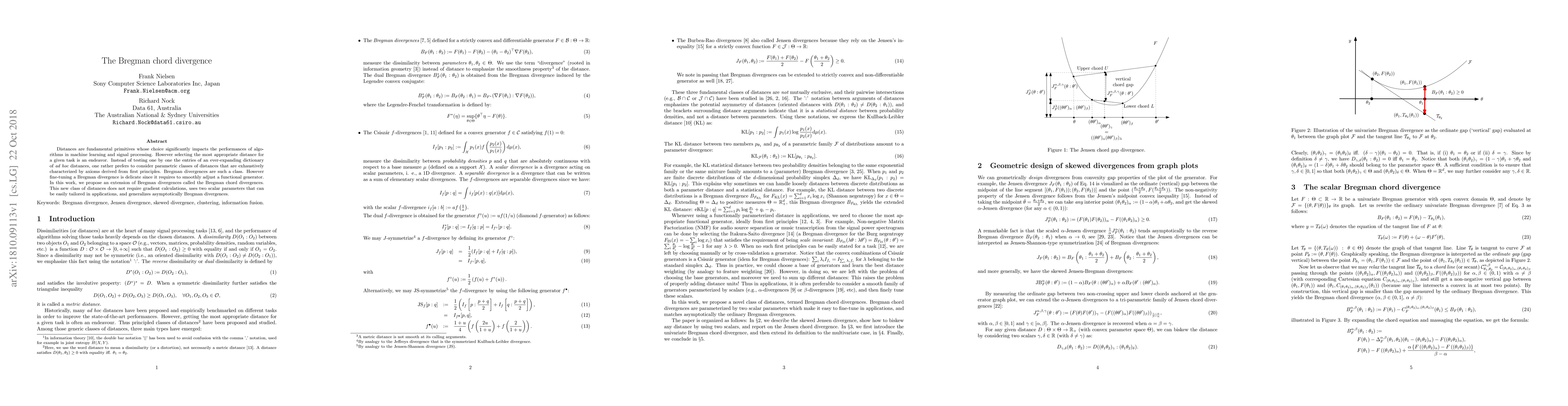 The paper introduces the Bregman chord divergence, an extension of Bregman divergences, offering an alternative distance measure that does not require gradient calculations and is easier to fine-tune using two adjustable scalar parameters, while still generalizing Bregman divergences asymptotically.