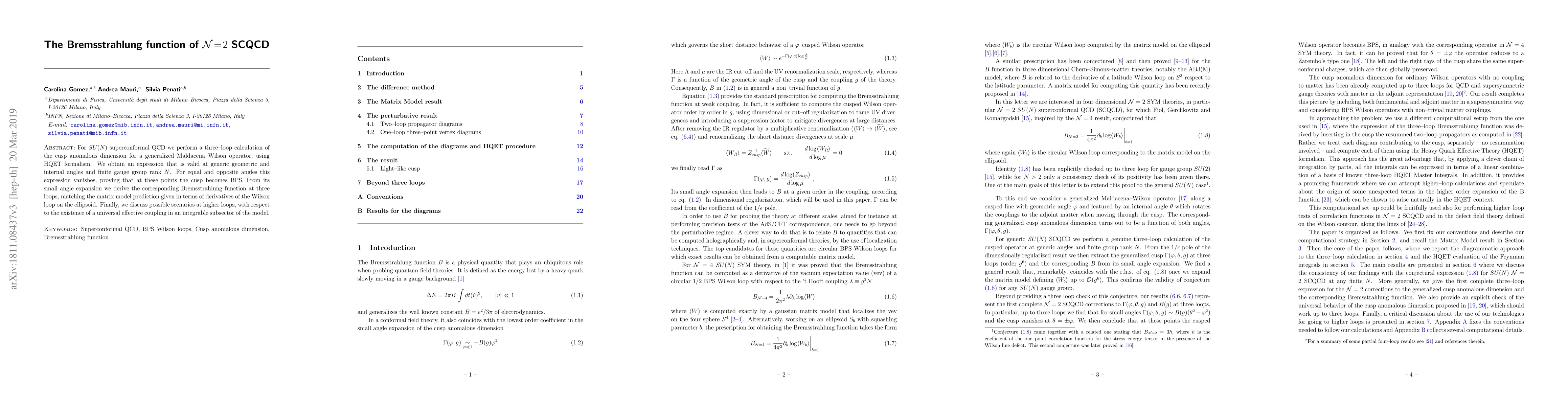 For $SU(N)$ superconformal QCD we perform a three-loop calculation of the generalized cusp anomalous dimension of the BPS Wilson loop operator using HQET formalism. We obtain an expression which is valid at generic geometric and internal angles and finite gauge group rank $N$. For equal and opposite angles this expression vanishes, proving that at these points the cusp becomes BPS. From its small angle expansion we derive the corresponding Bremsstrahlung function at three loops, matching the matrix model prediction given in terms of derivatives of the Wilson loop on the ellipsoid. Finally, we discuss possible scenarios at higher loops, with respect to the existence of a universal effective coupling in an integrable subsector of the model.