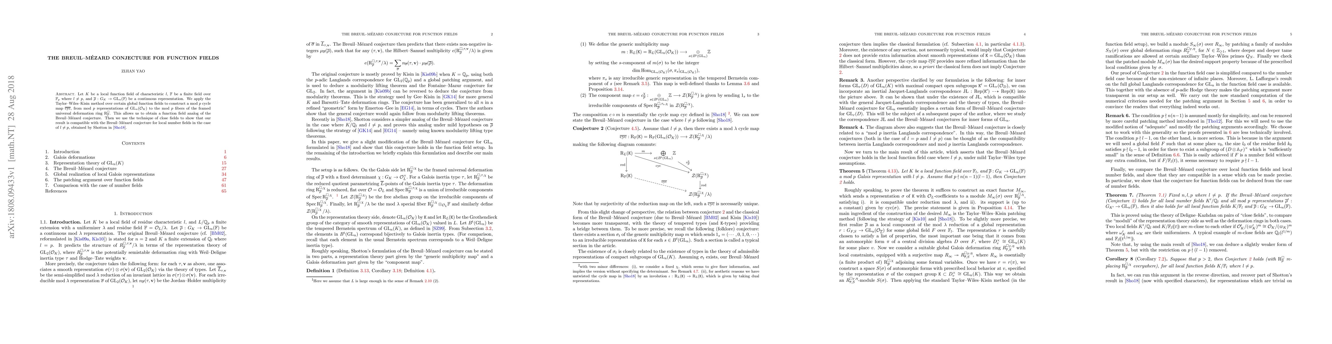 The paper constructs a mod $p$ cycle map to establish a function field analog of the Breuil-Mézard conjecture, and uses close fields to show compatibility with the conjecture for local number fields when the characteristic of the field differs from the prime $p$.