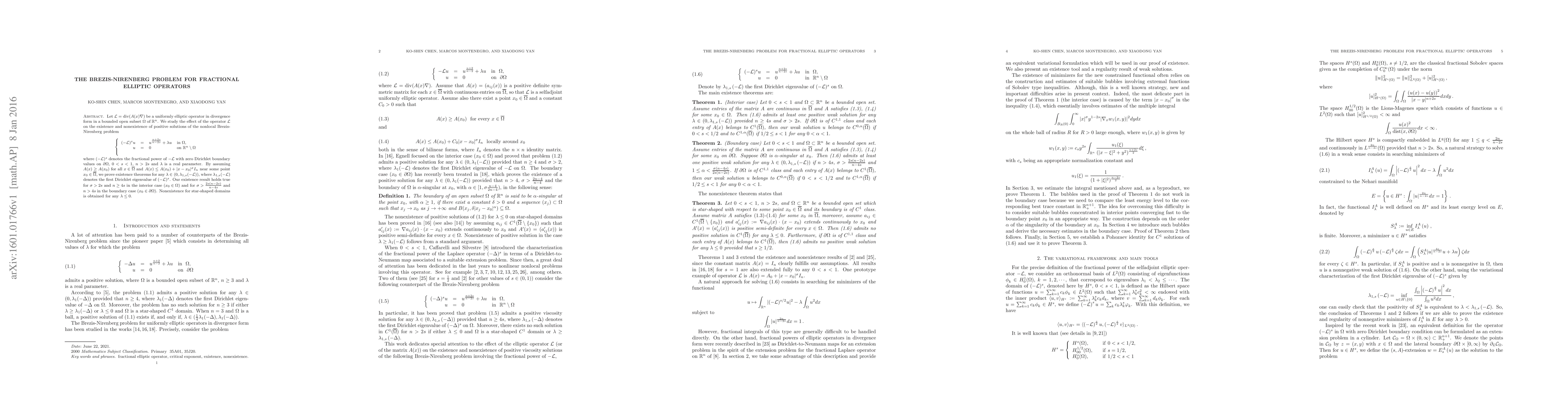 This paper investigates the existence and nonexistence of positive solutions for the nonlocal Brezis-Nirenberg problem when influenced by a fractional elliptic operator in divergence form within a bounded open set. The study focuses on how the operator affects the problem's solution characteristics.
