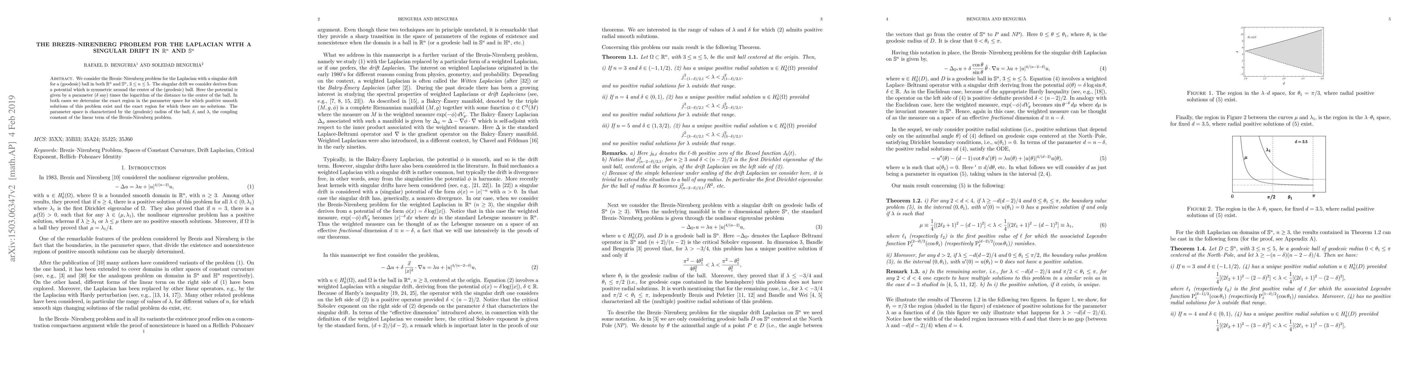 We consider the Brezis--Nirenberg problem for the Laplacian with a singular drift for a (geodesic) ball in both $\mathbb{R}^{n}$ and $\mathbb{S}^n$, $3 \le n \le 5$. The singular drift we consider derives from a potential which is symmetric around the center of the (geodesic) ball. Here the potential is given by a parameter ($\delta$ say) times the logarithm of the distance to the center of the ball. In both cases we determine the exact region in the parameter space for which positive smooth solutions of this problem exist and the exact region for which there are no solutions. The parameter space is characterized by the (geodesic) radius of the ball, $\delta$, and $\lambda$, the coupling constant of the linear term of the Brezis-Nirenberg problem.