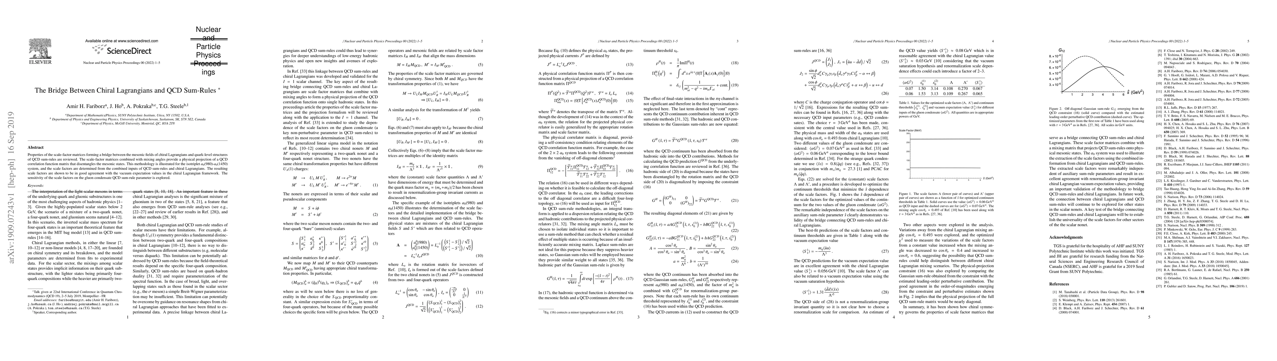 Properties of the scale-factor matrices forming a bridge between the mesonic fields of chiral Lagrangians and quark-level structures of QCD sum-rules are reviewed. The scale-factor matrices combined with mixing angles provide a physical projection of a QCD correlation function matrix that disentangles the mesonic states. This methodology is illustrated for the isotriplet $a_0(980)$-$a_0(1450)$ system, and the scale factors are determined from the combined inputs of QCD sum-rules and chiral Lagrangians. The resulting scale factors are shown to be in good agreement with the vacuum expectation values in the chiral Lagrangian framework. The sensitivity of the scale factors on the gluon condensate QCD sum-rule parameter is explored.
