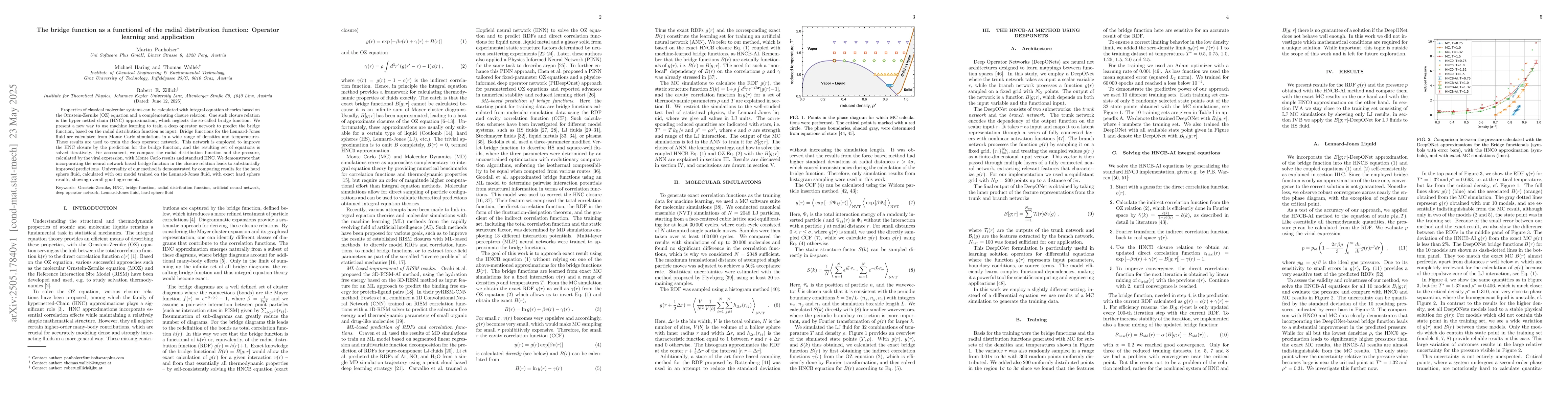 The development of a deep operator network capable of predicting the bridge function from the radial distribution function, significantly improving the accuracy of integral equation theories in statistical mechanics.