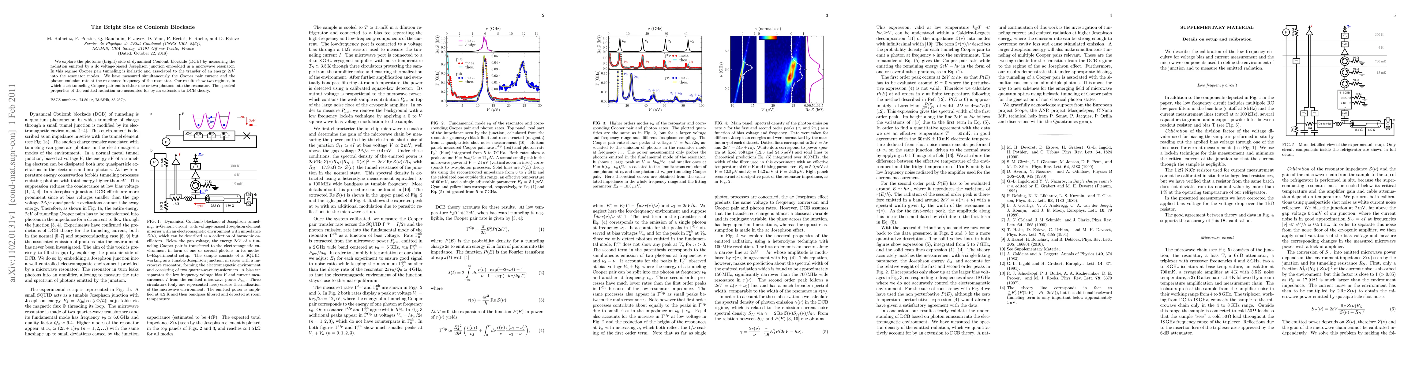 We explore the photonic (bright) side of dynamical Coulomb blockade (DCB) by measuring the radiation emitted by a dc voltage-biased Josephson junction embedded in a microwave resonator. In this regime Cooper pair tunneling is inelastic and associated to the transfer of an energy 2eV into the resonator modes. We have measured simultaneously the Cooper pair current and the photon emission rate at the resonance frequency of the resonator. Our results show two regimes, in which each tunneling Cooper pair emits either one or two photons into the resonator. The spectral properties of the emitted radiation are accounted for by an extension to DCB theory.