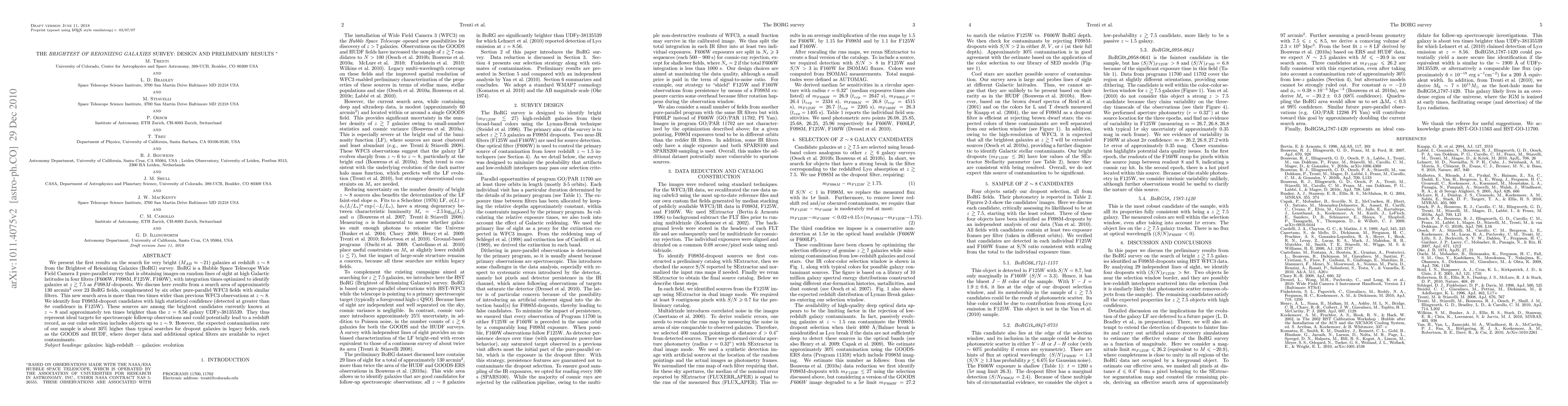 The Brightest of Reionizing Galaxies (BoRG) survey, using the Hubble Space Telescope, has identified four very bright (M_AB < -21) galaxy candidates at redshift z~8. These candidates, detected as F098M-dropouts, are among the brightest known at this redshift and are ideal targets for spectroscopic follow-up, potentially setting a new redshift record. However, the contamination rate is higher due to limited data compared to legacy fields.