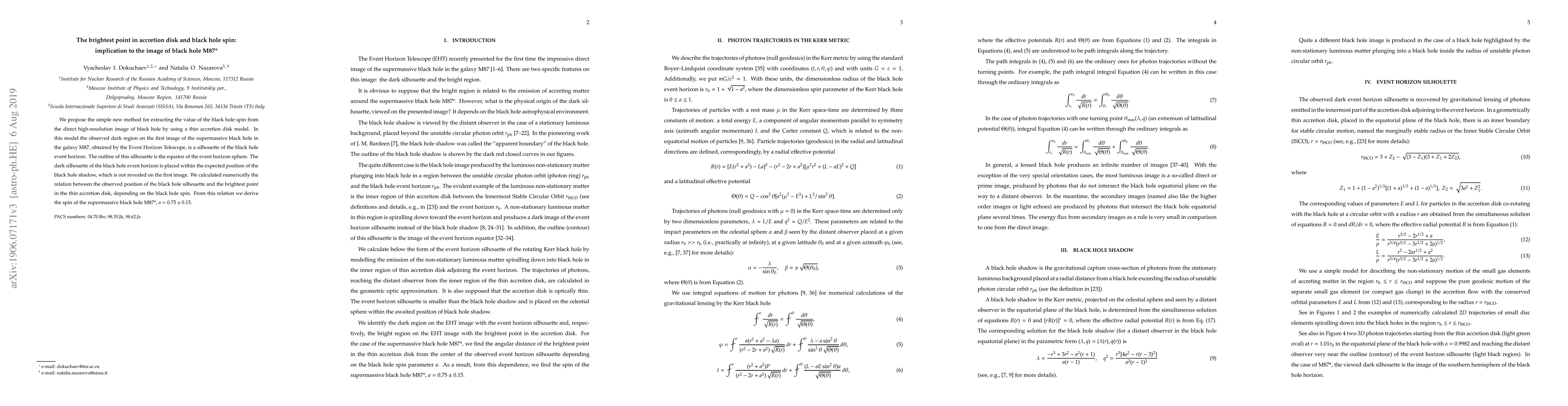 This paper introduces a new method to determine the spin of black hole M87* by analyzing the brightest point in its accretion disk and the silhouette of its event horizon from the Event Horizon Telescope image. The derived spin value is $a=0.75\pm0.15$.