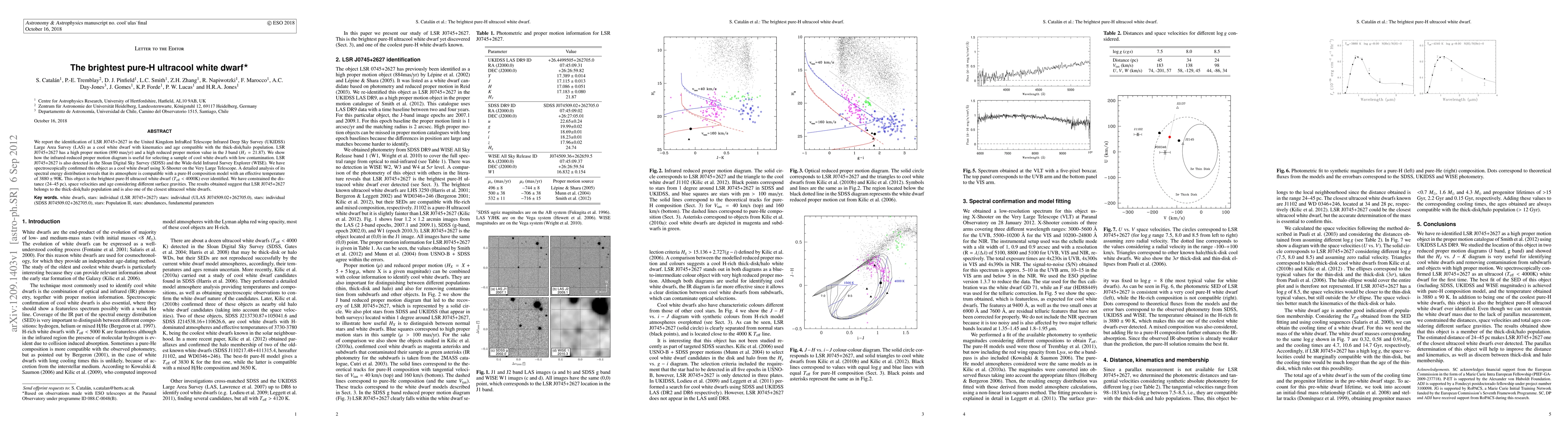 LSR J0745+2627 is identified as the brightest pure-H ultracool white dwarf with a temperature of 3880+-90 K, belonging to the thick-disk/halo population and detected in multiple surveys including UKIDSS, SDSS, and WISE. Its high proper motion and spectral analysis confirm its unique status among ultracool white dwarfs.
