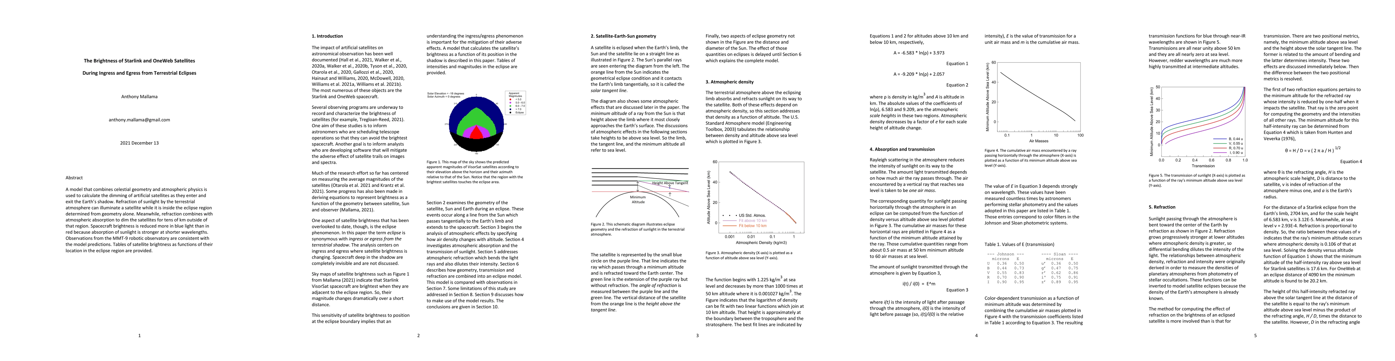 Researchers developed a model to predict the dimming of Starlink and OneWeb satellites during terrestrial eclipses, finding that refraction and atmospheric absorption cause greater brightness in blue light than red.