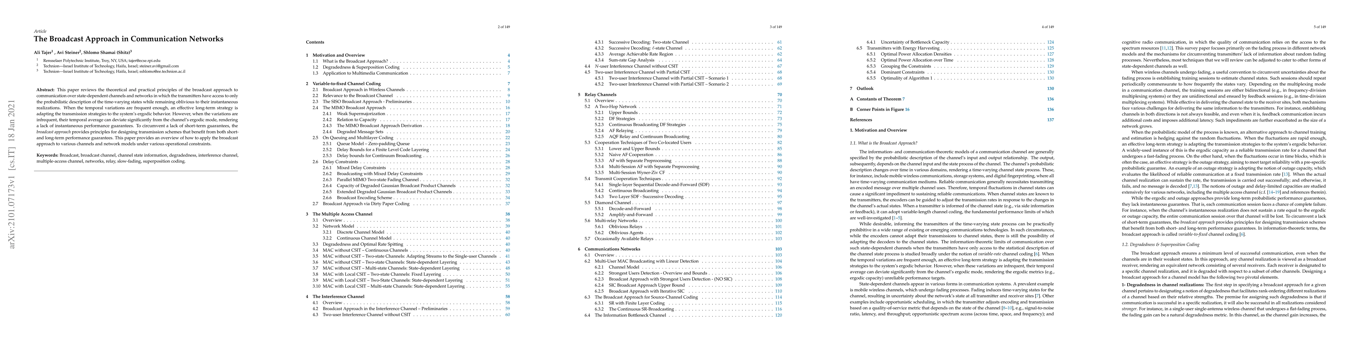 This paper reviews the broadcast approach for communication over state-dependent channels, emphasizing its ability to adapt to both short-term and long-term performance guarantees despite transmitters' lack of knowledge about instantaneous channel states. It provides an overview of its application across various channels and network models under different operational constraints.