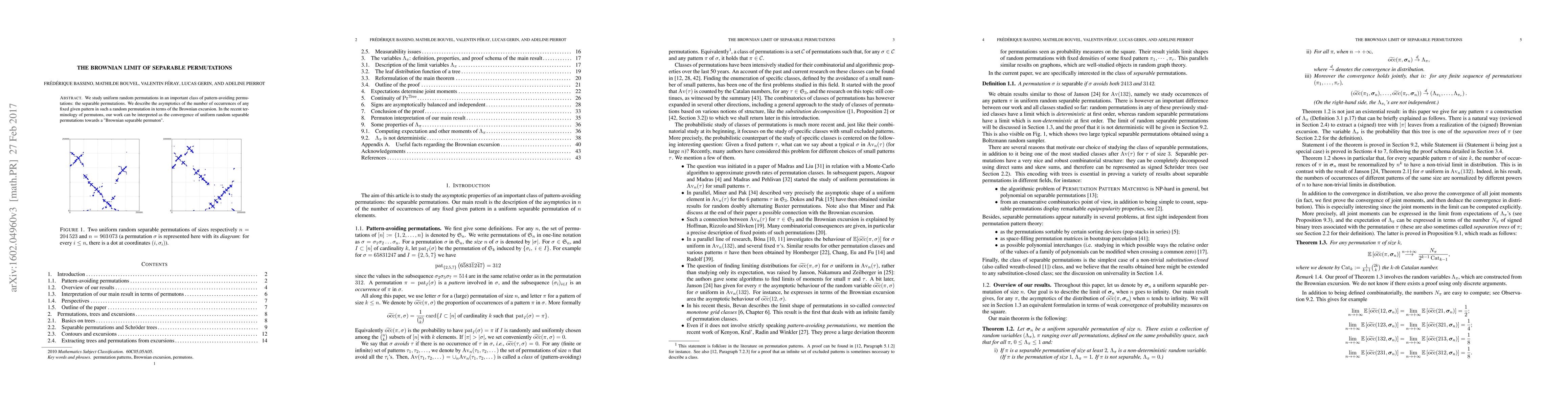 The paper introduces a novel method to describe the asymptotic behavior of pattern occurrences in separable permutations using Brownian excursions, thereby establishing a permuton limit theorem for uniform random separable permutations.