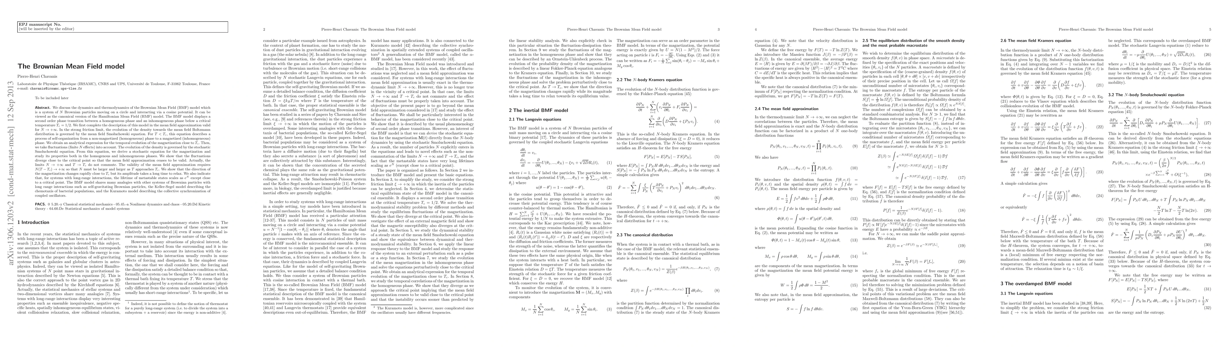 The research employs a mean-field approach to analyze the Brownian Mean Field (BMF) model, discussing its dynamics and thermodynamics. It completes the description of the system in mean-field approximation and considers fluctuations to study the stochastic evolution of magnetization in both homogeneous and inhomogeneous phases.