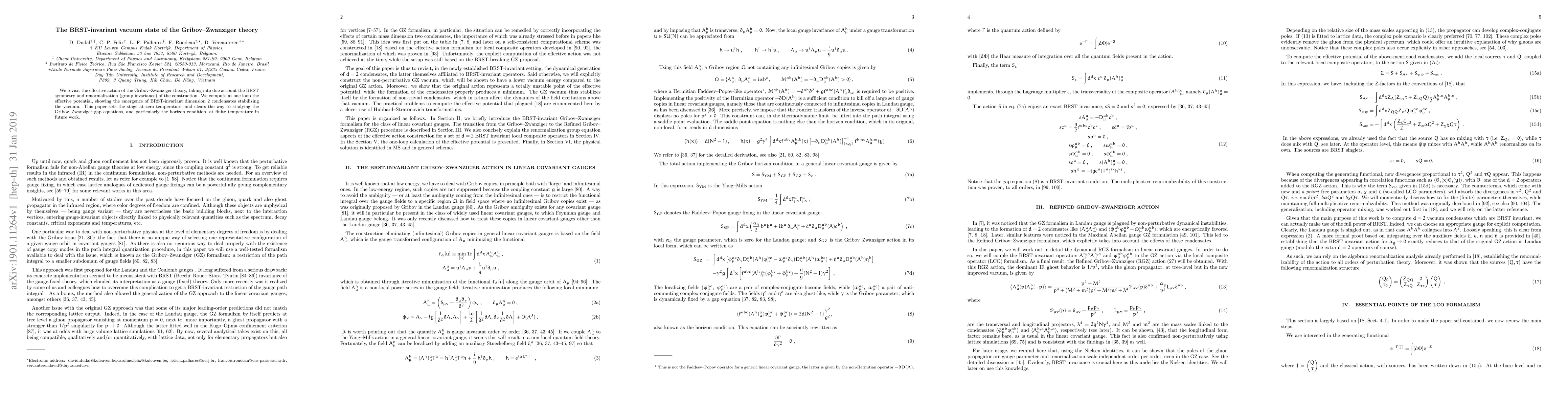 We revisit the effective action of the Gribov-Zwanziger theory, taking into due account the BRST symmetry and renormalization (group invariance) of the construction. We compute at one loop the effective potential, showing the emergence of BRST-invariant dimension 2 condensates stabilizing the vacuum. This paper sets the stage at zero temperature, and clears the way to studying the Gribov-Zwanziger gap equations, and particularly the horizon condition, at finite temperature in future work.