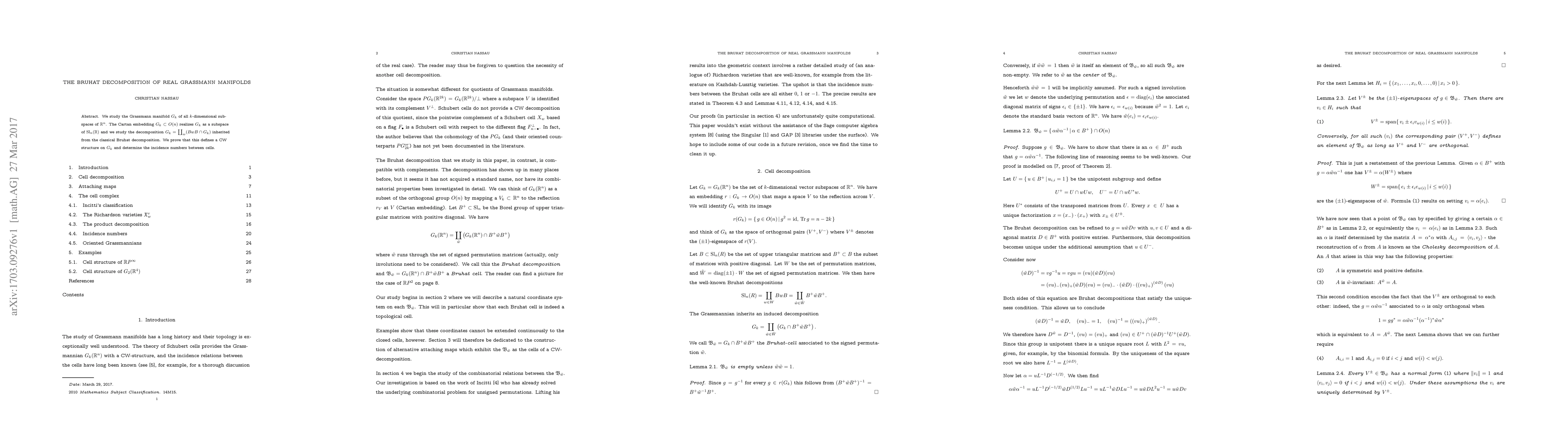 This paper investigates the Bruhat decomposition of real Grassmann manifolds $G_k$, showing that it induces a CW structure on $G_k$ and determining the incidence numbers between the cells. The decomposition is inherited from the classical Bruhat decomposition of $O(n)$.