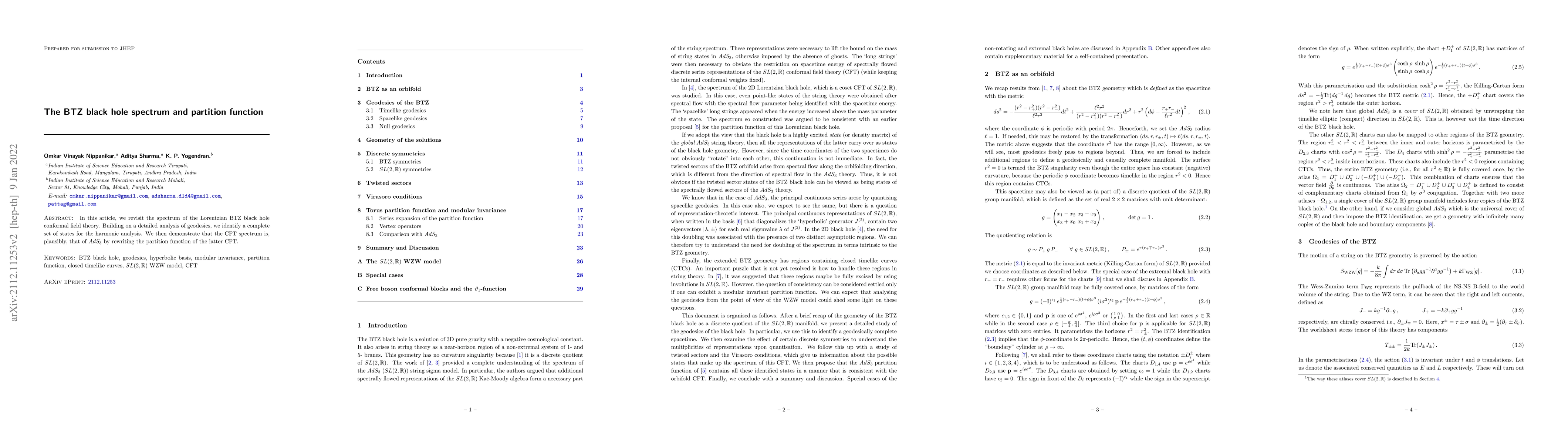 This paper analyzes the spectrum of the BTZ black hole in the context of conformal field theory, identifying a complete set of states through geodesic analysis. It demonstrates that the BTZ CFT spectrum aligns with that of $AdS_3$ by reformulating the partition function of the latter.