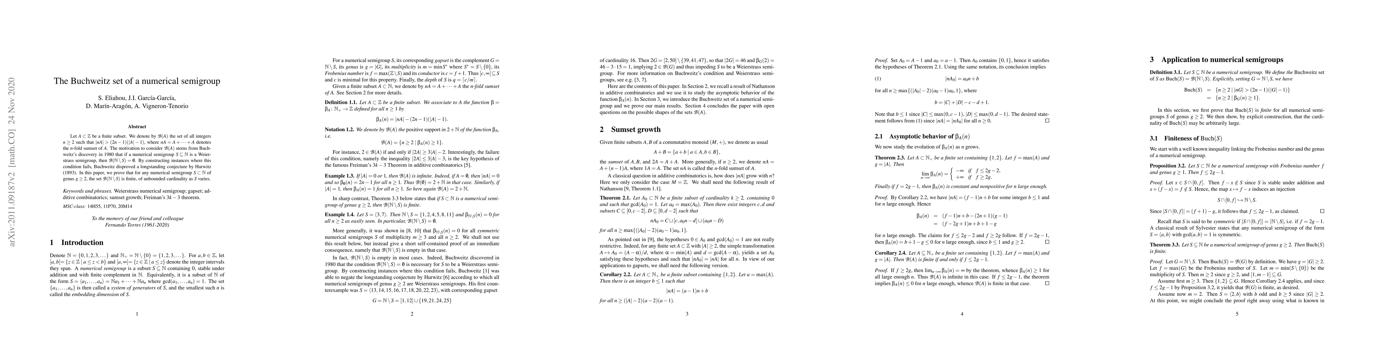 Let $A \subset {\mathbb Z}$ be a finite subset. We denote by $\mathcal{B}(A)$ the set of all integers $n \ge 2$ such that $|nA| > (2n-1)(|A|-1)$, where $nA=A+\cdots+A$ denotes the $n$-fold sumset of $A$. The motivation to consider $\mathcal{B}(A)$ stems from Buchweitz's discovery in 1980 that if a numerical semigroup $S \subseteq {\mathbb N}$ is a Weierstrass semigroup, then $\mathcal{B}({\mathbb N} \setminus S) = \emptyset$. By constructing instances where this condition fails, Buchweitz disproved a longstanding conjecture by Hurwitz (1893). In this paper, we prove that for any numerical semigroup $S \subset {\mathbb N}$ of genus $g \ge 2$, the set $\mathcal{B}({\mathbb N} \setminus S) $ is finite, of unbounded cardinality as $S$ varies.