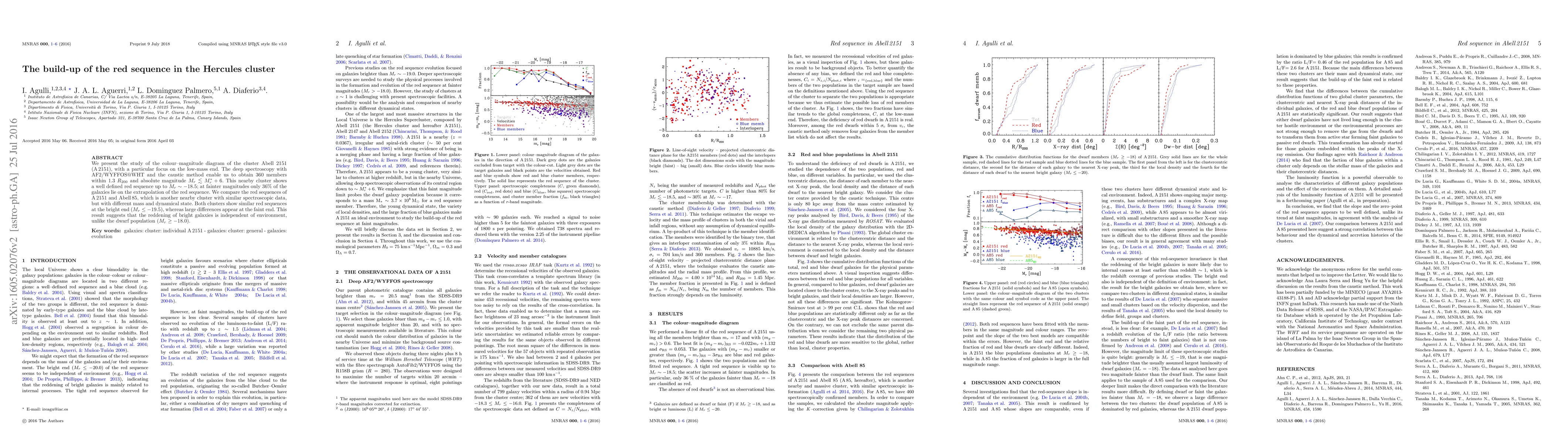 We present the study of the colour-magnitude diagram of the cluster Abell 2151 (A2151), with a particular focus on the low-mass end. The deep spectroscopy with AF2/WYFFOS@WHT and the caustic method enable us to obtain 360 members within 1.3 R_200 and absolute magnitude M_r < M*_r+6. This nearby cluster shows a well defined red sequence up to M_r ~ - 18.5; at fainter magnitudes only 36% of the galaxies lie on the extrapolation of the red sequence. We compare the red sequences of A2151 and Abell 85, which is another nearby cluster with similar spectroscopic data, but with different mass and dynamical state. Both clusters show similar red sequences at the bright end (M_r < -19.5), whereas large differences appear at the faint end. This result suggests that the reddening of bright galaxies is independent of environment, unlike the dwarf population (M_r > -18.0).