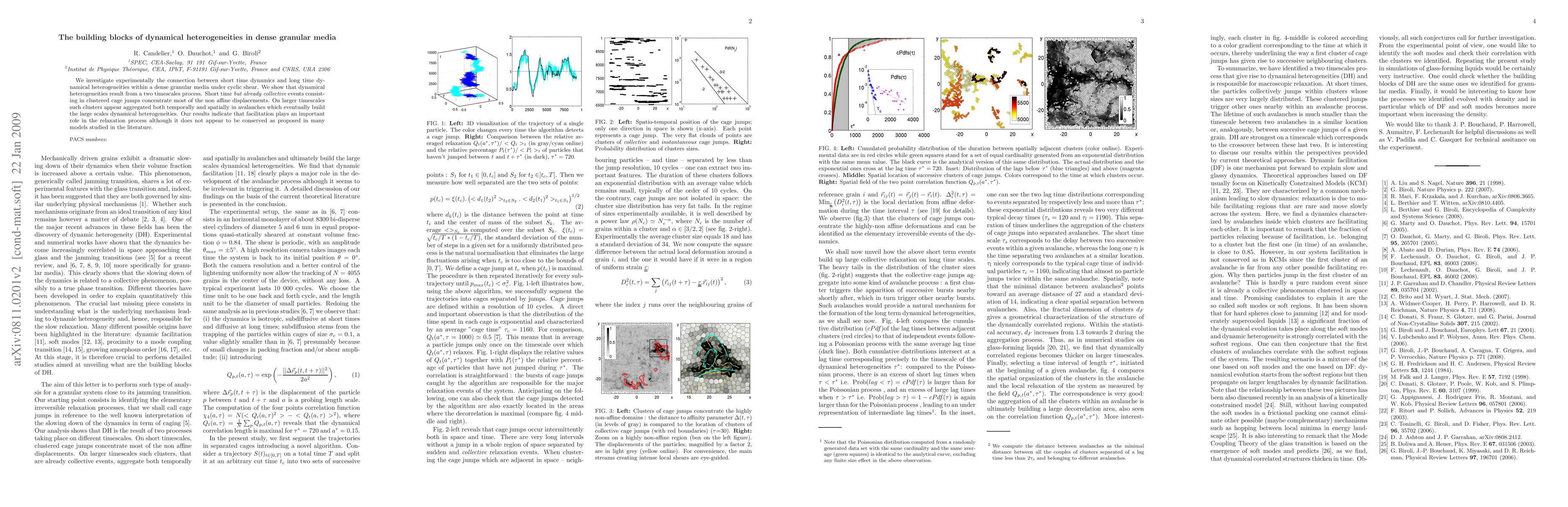 This study experimentally links short-term collective cage jumps in dense granular media to long-term dynamical heterogeneities under cyclic shear, revealing a two-timescale process where clustered events aggregate into larger avalanches. Facilitation is shown to significantly influence the relaxation process, though it does not conform to conservation principles as often assumed in existing models.