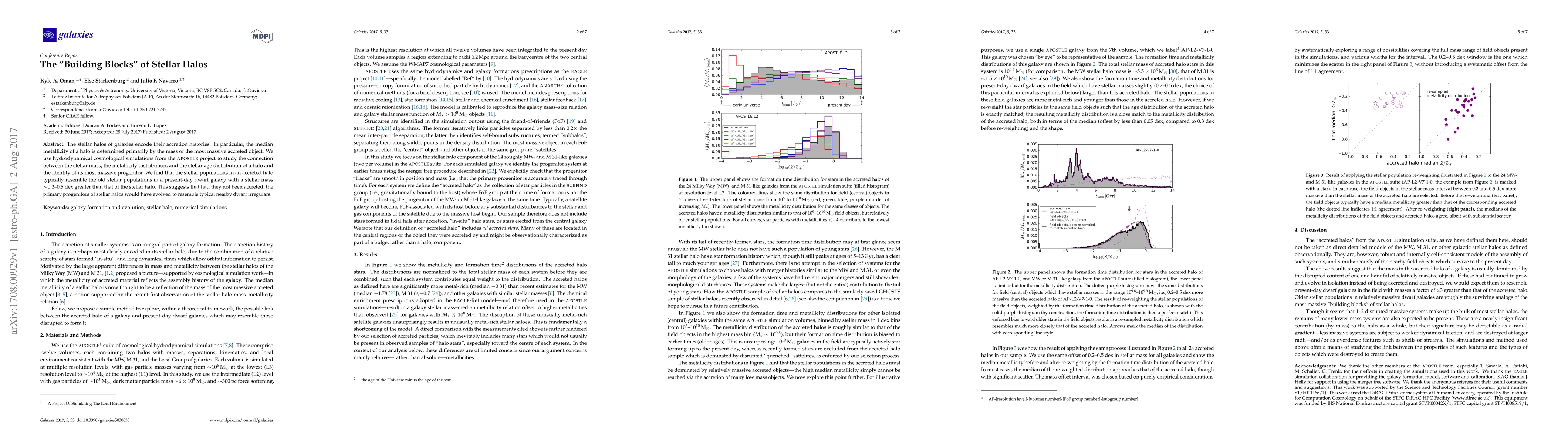The stellar halos of galaxies encode their accretion histories. In particular, the median metallicity of a halo is determined primarily by the mass of the most massive accreted object. We use hydrodynamical cosmological simulations from the APOSTLE project to study the connection between the stellar mass, the metallicity distribution, and the stellar age distribution of a halo and the identity of its most massive progenitor. We find that the stellar populations in an accreted halo typically resemble the old stellar populations in a present-day dwarf galaxy with a stellar mass $\sim 0.2-0.5$ dex greater than that of the stellar halo. This suggest that had they not been accreted, the primary progenitors of stellar halos would have evolved to resemble typical nearby dwarf irregulars.
