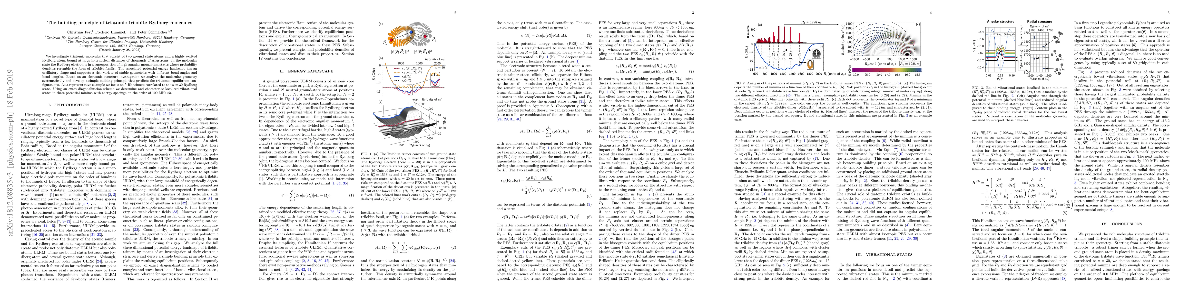 This paper explores triatomic Rydberg molecules composed of two ground state atoms and a highly excited Rydberg atom, revealing a rich variety of stable geometries resembling trilobites. The study develops a building principle to predict equilibrium configurations and characterizes localized vibrational states in these structures.