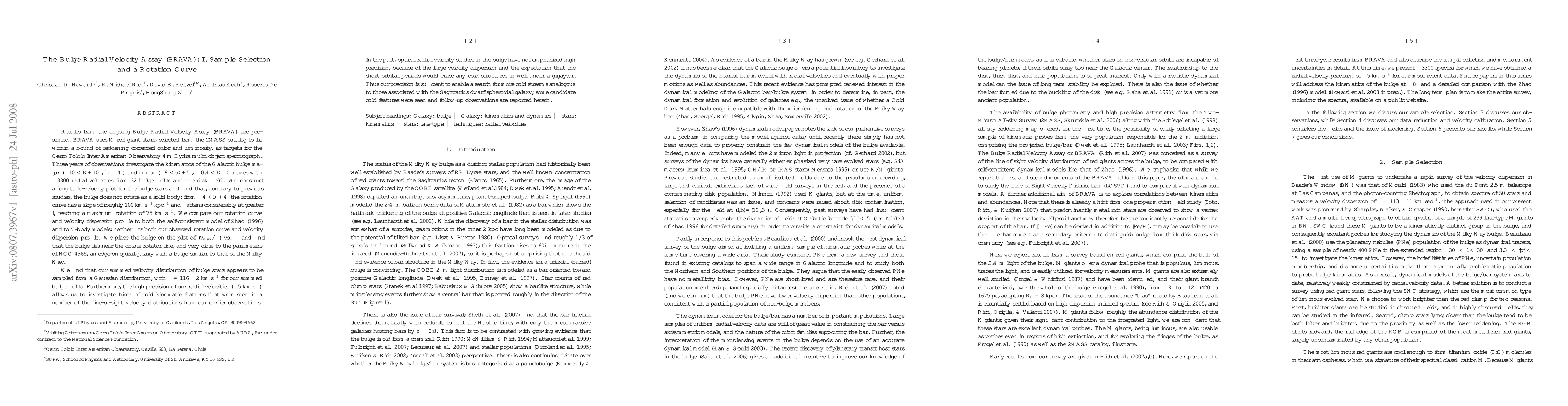 The Bulge Radial Velocity Assay (BRAVA) study uses 3 years of observations to map the rotation curve of the Milky Way's bulge, finding that it does not rotate as a solid body, with rotation speeds decreasing at greater distances from the center.