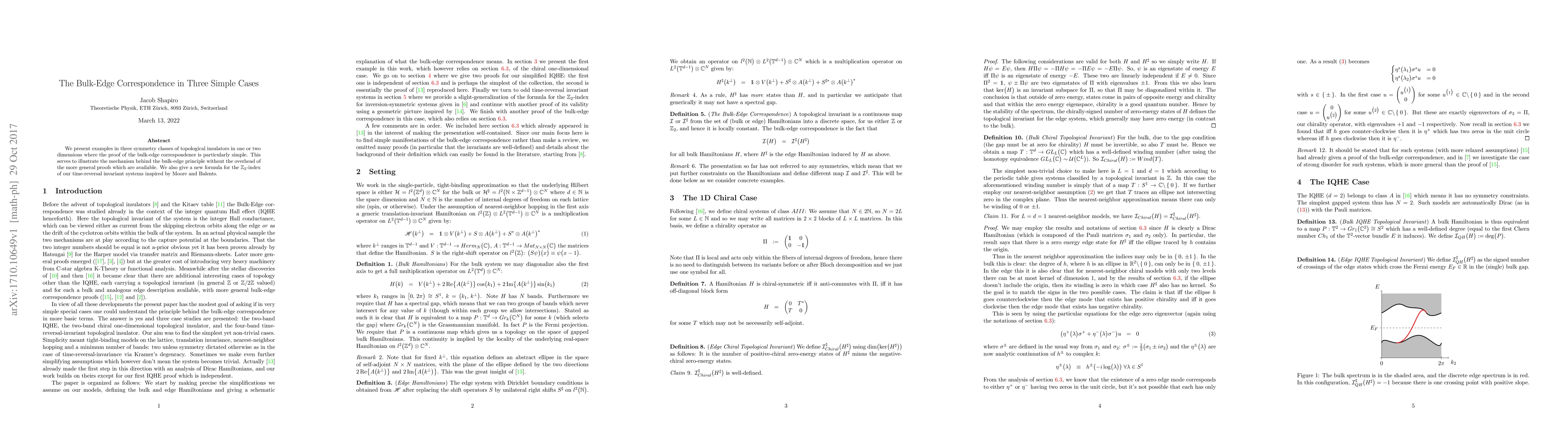Researchers simplify proof of bulk-edge correspondence in topological insulators by examining three simple cases, providing insight into the underlying mechanism and a new formula for calculating the Z2-index of time-reversal invariant systems.