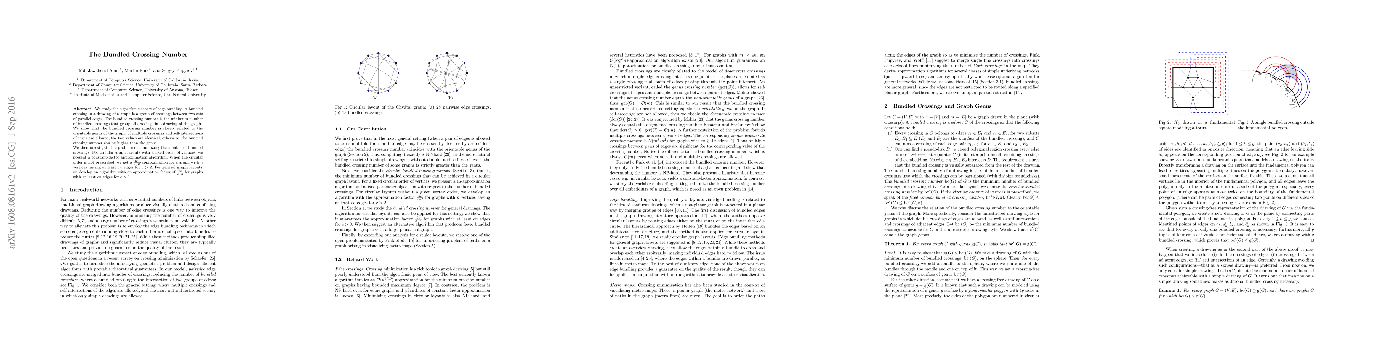 The paper introduces the concept of bundled crossing number, establishes its relationship with the orientable genus, and provides approximation algorithms for minimizing bundled crossings in various graph layouts.