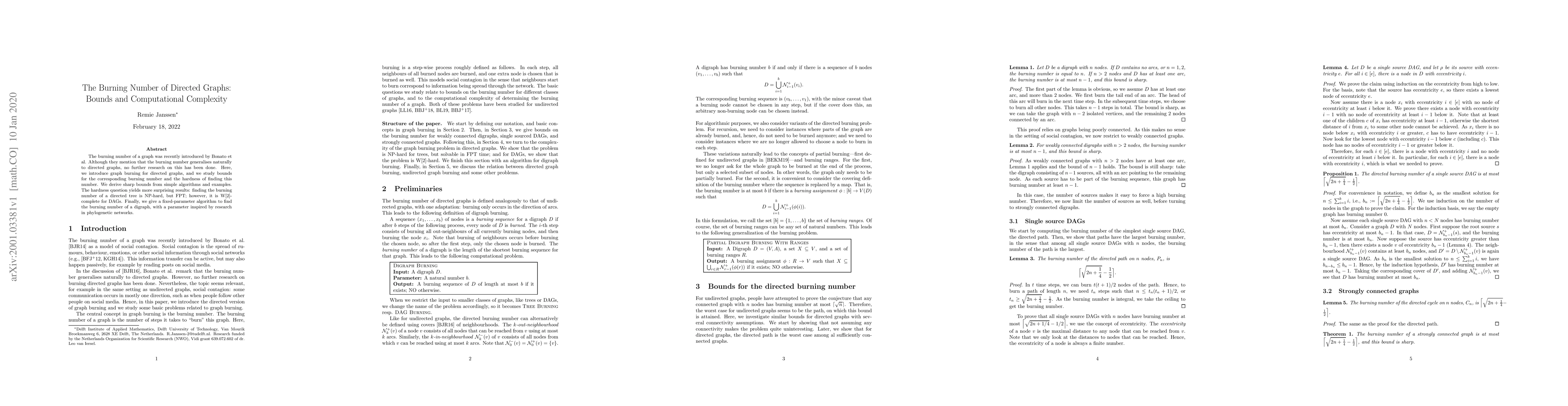 This paper explores the burning number for directed graphs, establishing bounds and computational complexity. It finds that determining the burning number for directed trees is NP-hard but fixed-parameter tractable, while it is W[2]-complete for directed acyclic graphs (DAGs).