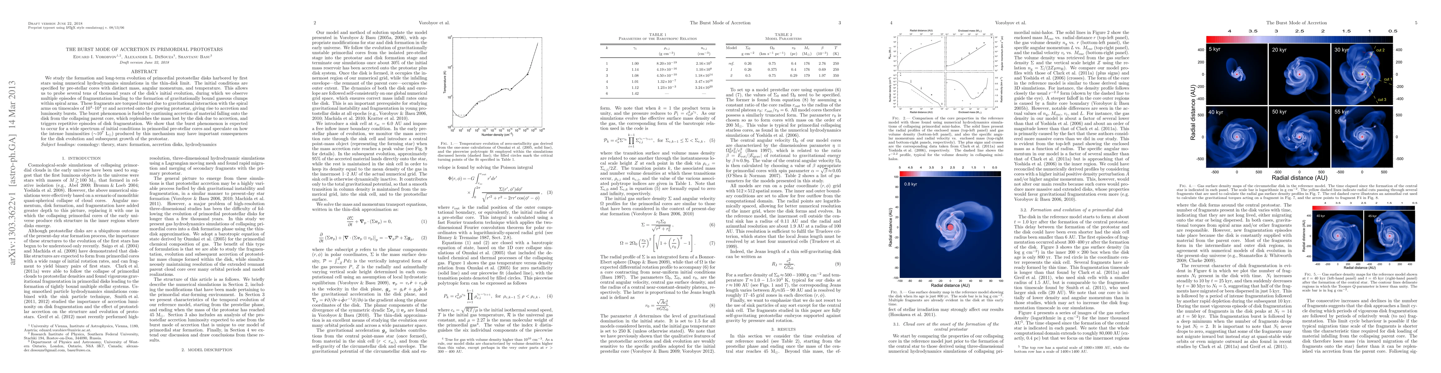 This paper uses numerical simulations to study the burst mode of accretion in primordial protostars, revealing multiple fragmentation episodes leading to luminosity bursts fueled by material from collapsing parent cores. The intense luminosities produced may significantly impact the disk evolution and protostar growth.