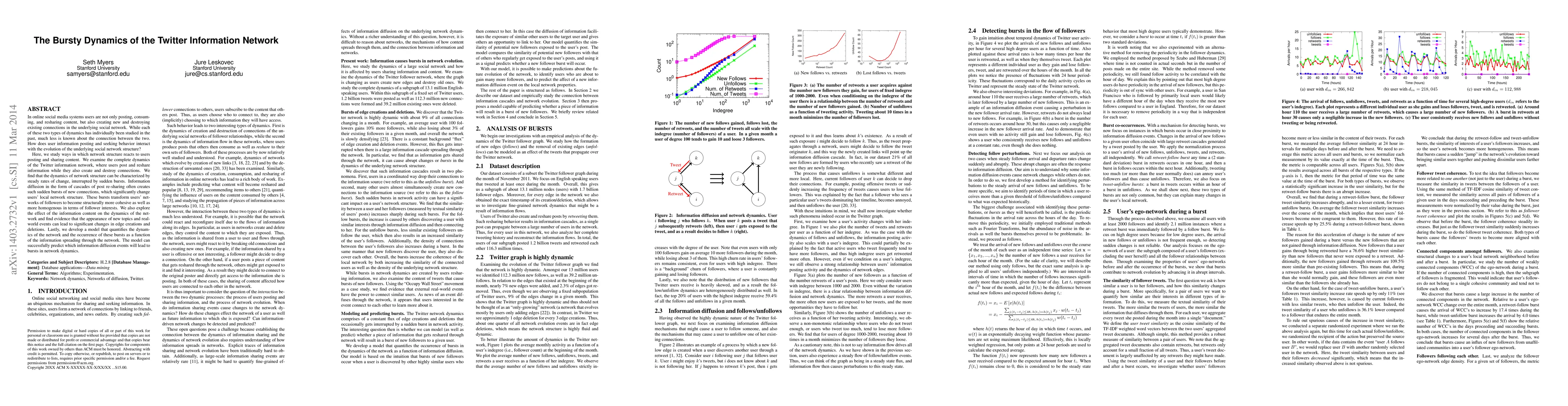 A model was developed to predict these bursts based on information spreading through the network, providing insights into the dynamic nature of social media networks.