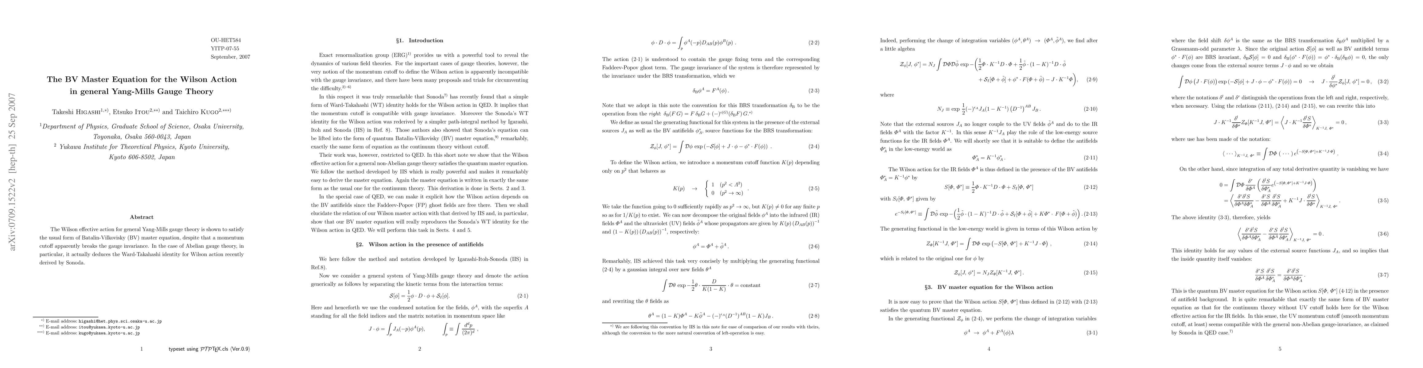 The Wilson effective action for general Yang-Mills gauge theory satisfies the Batalin-Vilkovisky master equation, maintaining gauge invariance despite a momentum cutoff. For Abelian gauge theory, it confirms the Ward-Takahashi identity derived by Sonoda.