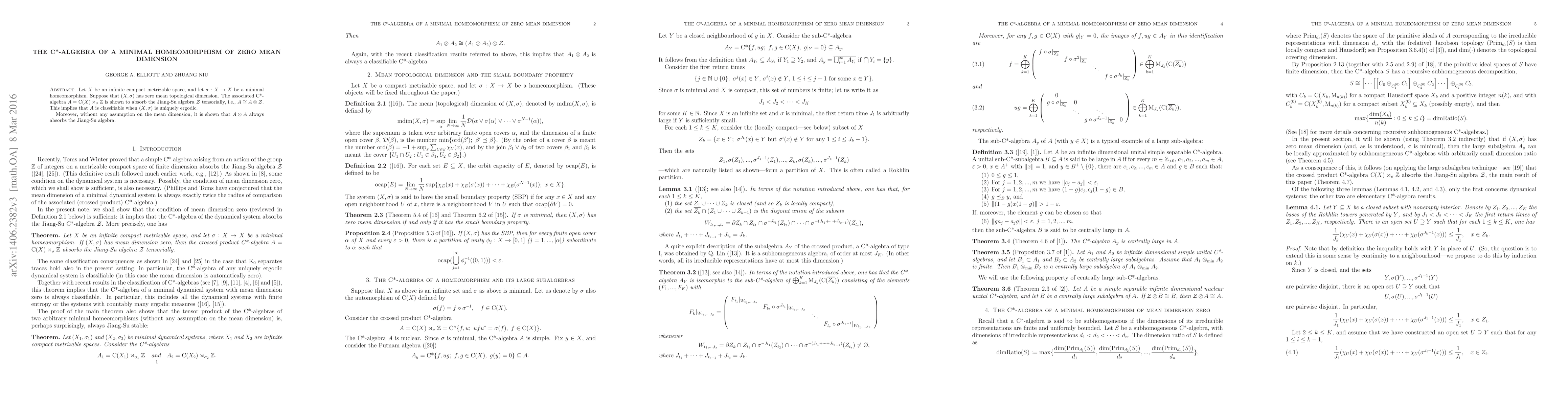 Let $X$ be an infinite compact metrizable space, and let $\sigma: X\to X$ be a minimal homeomorphism. Suppose that $(X, \sigma)$ has zero mean topological dimension. The associated C*-algebra $A=\mathrm{C}(X)\rtimes_\sigma\mathbb Z$ is shown to absorb the Jiang-Su algebra $\mathcal Z$ tensorially, i.e., $A\cong A\otimes\mathcal Z$. This implies that $A$ is classifiable when $(X, \sigma)$ is uniquely ergodic. Moreover, without any assumption on the mean dimension, it is shown that $A\otimes A$ always absorbs the Jiang-Su algebra.