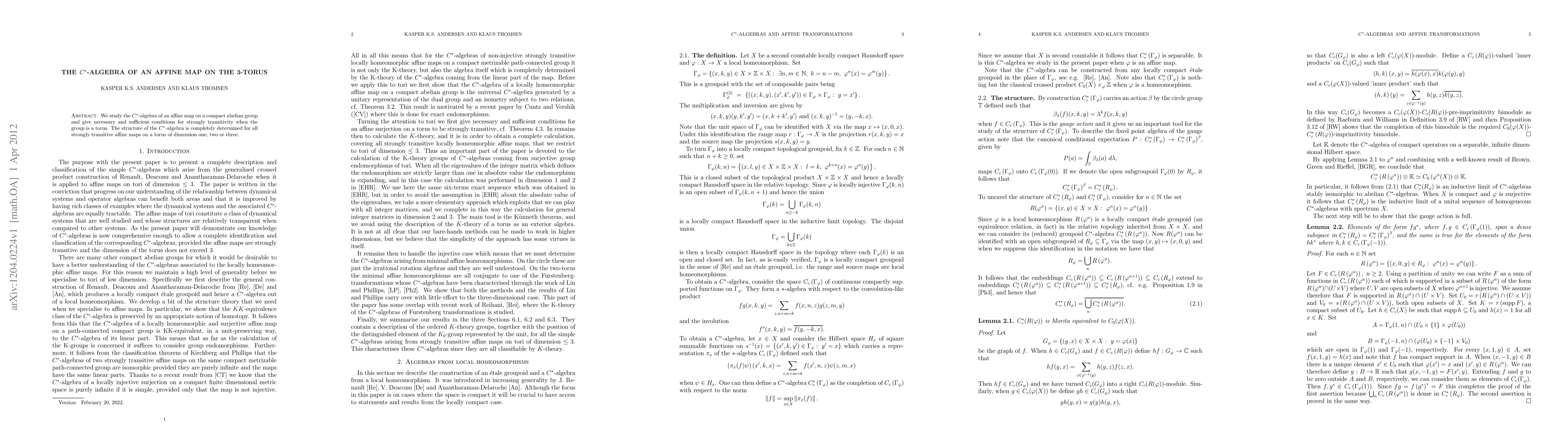 This research determines the C*-algebra associated with affine maps on a compact abelian group, specifically the 3-torus, and provides conditions for strong transitivity. It fully characterizes the structure of the C*-algebra for strongly transitive affine maps in one-, two-, and three-dimensional tori.