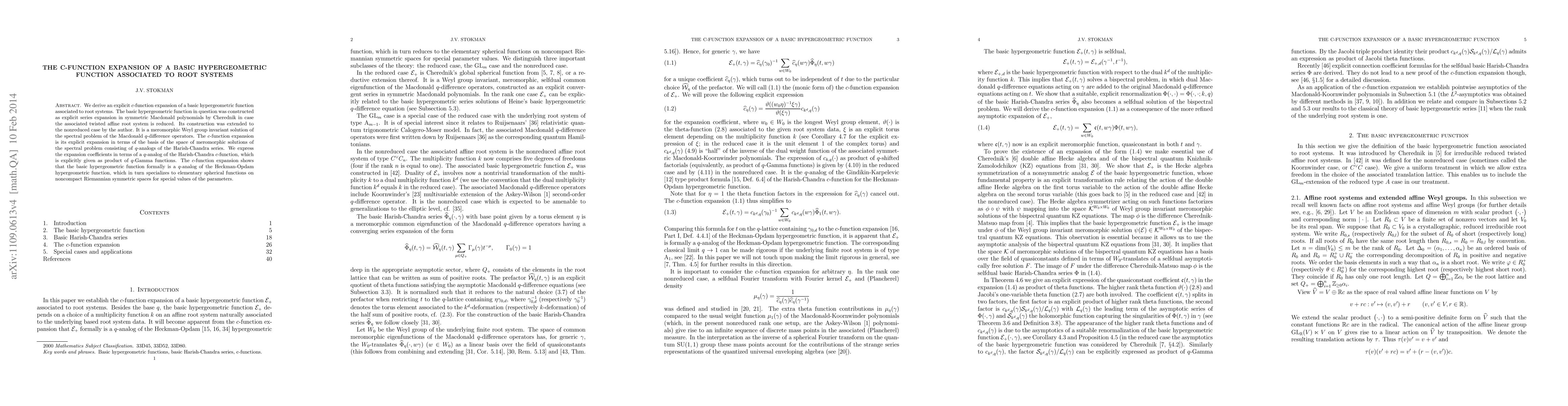 This paper derives an explicit c-function expansion for a basic hypergeometric function linked to root systems, showing it as a q-analog of the Heckman-Opdam hypergeometric function, and expresses the expansion coefficients using a q-analog of the Harish-Chandra c-function.