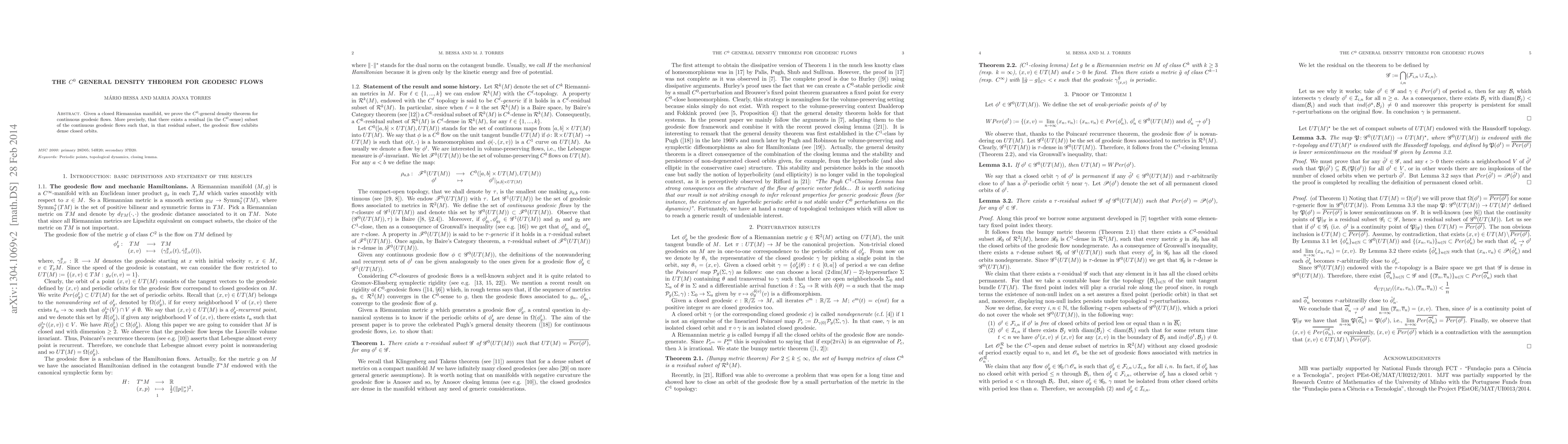 Researchers prove a theorem showing that certain geodesic flows on closed Riemannian manifolds contain dense closed orbits in a subset of the flow.