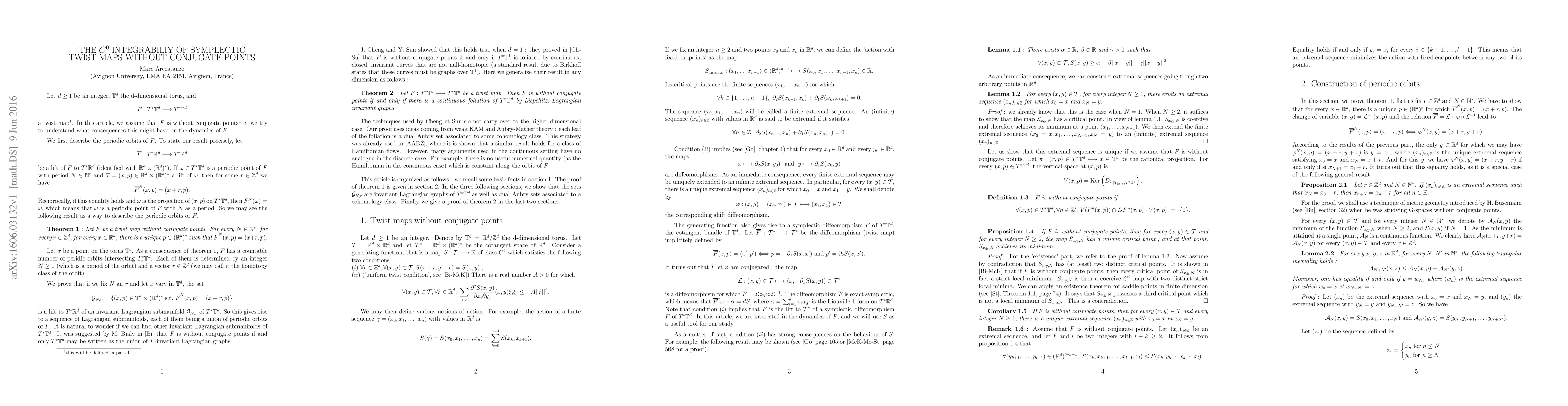 Summary: This paper proves that symplectic twist maps on the cotangent bundle of the d-dimensional torus, lacking conjugate points, are $C^0$ integrable, ensuring continuous foliation by invariant Lagrangian graphs.