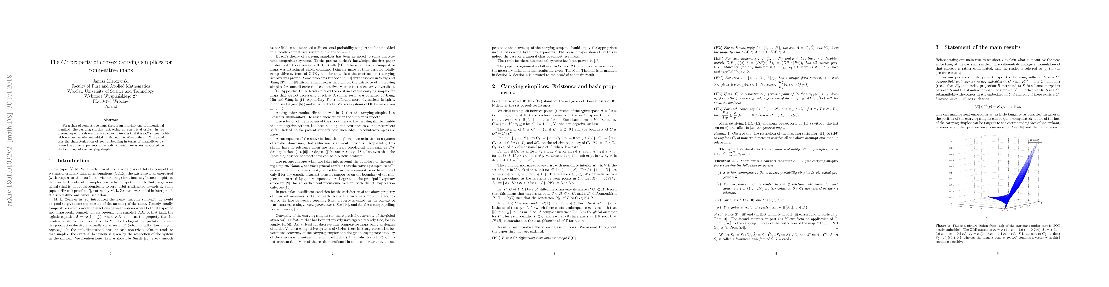The paper proves that convex carrying simplices in competitive maps are $C^1$ submanifolds-with-corners, which have implications for the characterization of neat embeddings in terms of Lyapunov exponents.