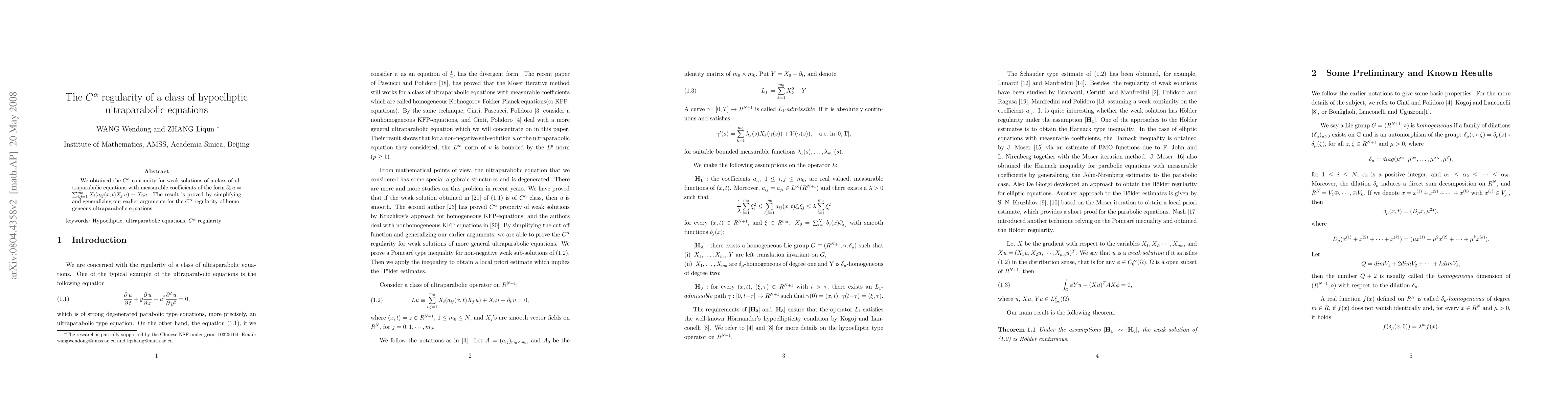 We obtained the $C^{\a}$ continuity for weak solutions of a class of ultraparabolic equations with measurable coefficients of the form ${\ptl_t u}= \sum_{i,j=1}^{m_0}X_i(a_{ij}(x,t)X_j u)+X_0 u$. The result is proved by simplifying and generalizing our earlier arguments for the $C^{\a}$ regularity of homogeneous ultraparabolic equations.