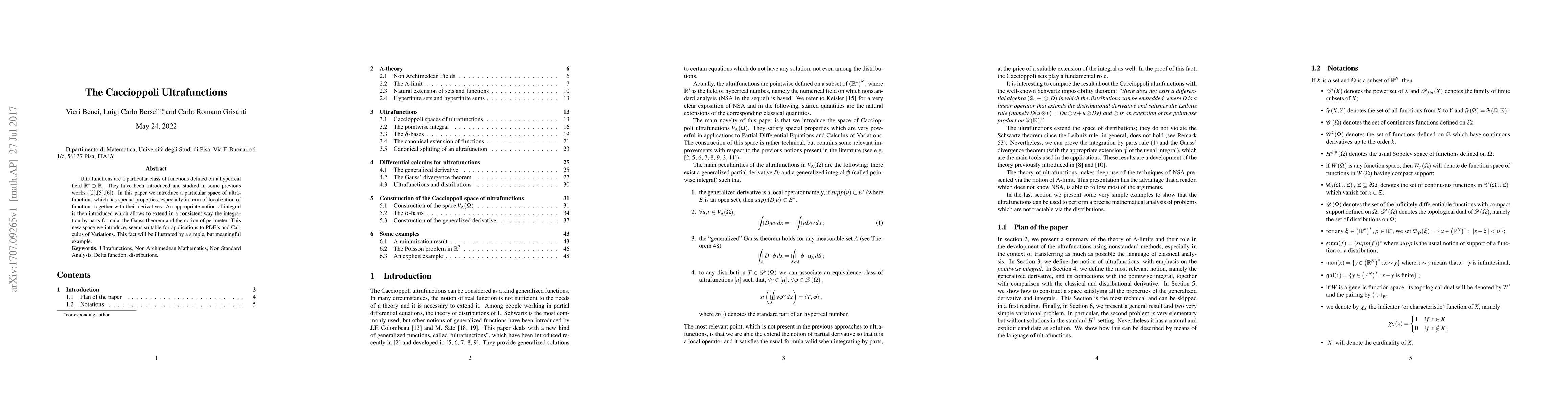 Ultrafunctions are a particular class of functions defined on a hyperreal field $\mathbb{R}^{\ast}\supset\mathbb{R}$. They have been introduced and studied in some previous works. In this paper we introduce a particular space of ultrafunctions which has special properties, especially in term of localization of functions together with their derivatives. An appropriate notion of integral is then introduced which allows to extend in a consistent way the integration by parts formula, the Gauss theorem and the notion of perimeter. This new space we introduce, seems suitable for applications to PDE's and Calculus of Variations. This fact will be illustrated by a simple, but meaningful example.