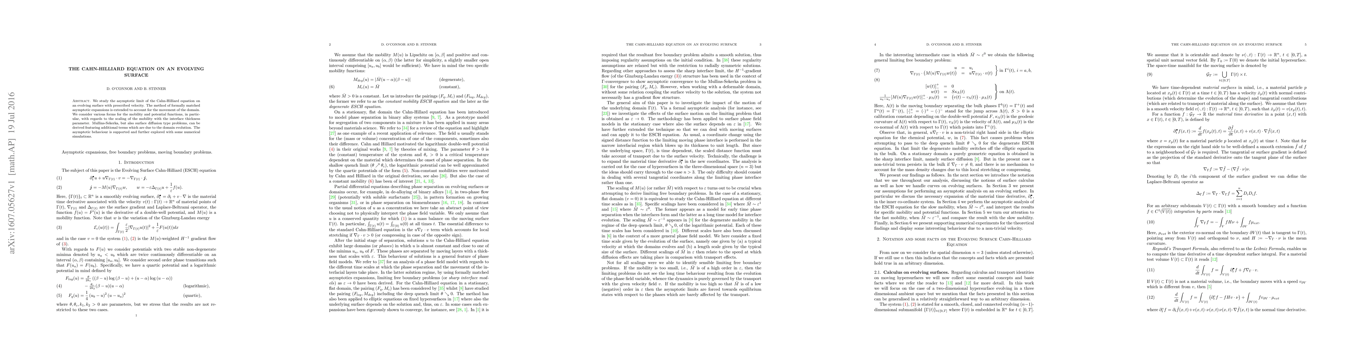This paper investigates the asymptotic behavior of the Cahn-Hilliard equation on an evolving surface, employing matched asymptotic expansions to account for domain movement. It explores various mobility and potential functions, deriving additional terms due to surface diffusion and domain evolution, and supports findings with numerical simulations.