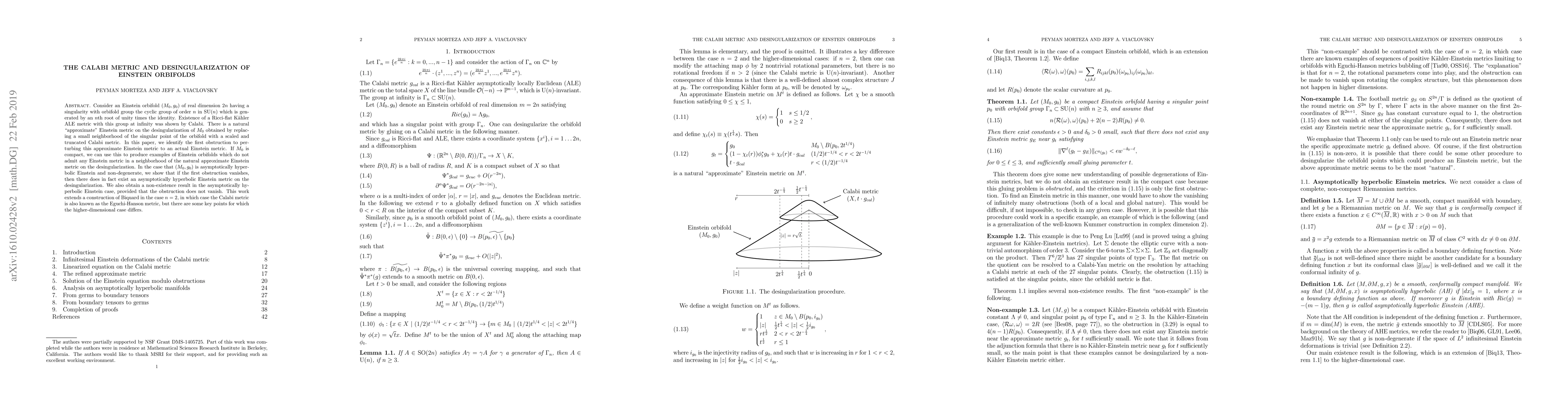 Consider an Einstein orbifold $(M_0,g_0)$ of real dimension $2n$ having a singularity with orbifold group the cyclic group of order $n$ in ${\rm{SU}}(n)$ which is generated by an $n$th root of unity times the identity. Existence of a Ricci-flat K\"ahler ALE metric with this group at infinity was shown by Calabi. There is a natural "approximate" Einstein metric on the desingularization of $M_0$ obtained by replacing a small neighborhood of the singular point of the orbifold with a scaled and truncated Calabi metric. In this paper, we identify the first obstruction to perturbing this approximate Einstein metric to an actual Einstein metric. If $M_0$ is compact, we can use this to produce examples of Einstein orbifolds which do not admit any Einstein metric in a neighborhood of the natural approximate Einstein metric on the desingularization. In the case that $(M_0,g_0)$ is asymptotically hyperbolic Einstein and non-degenerate, we show that if the first obstruction vanishes, then there does in fact exist an asymptotically hyperbolic Einstein metric on the desingularization. We also obtain a non-existence result in the asymptotically hyperbolic Einstein case, provided that the obstruction does not vanish. This work extends a construction of Biquard in the case $n =2$, in which case the Calabi metric is also known as the Eguchi-Hanson metric, but there are some key points for which the higher-dimensional case differs.