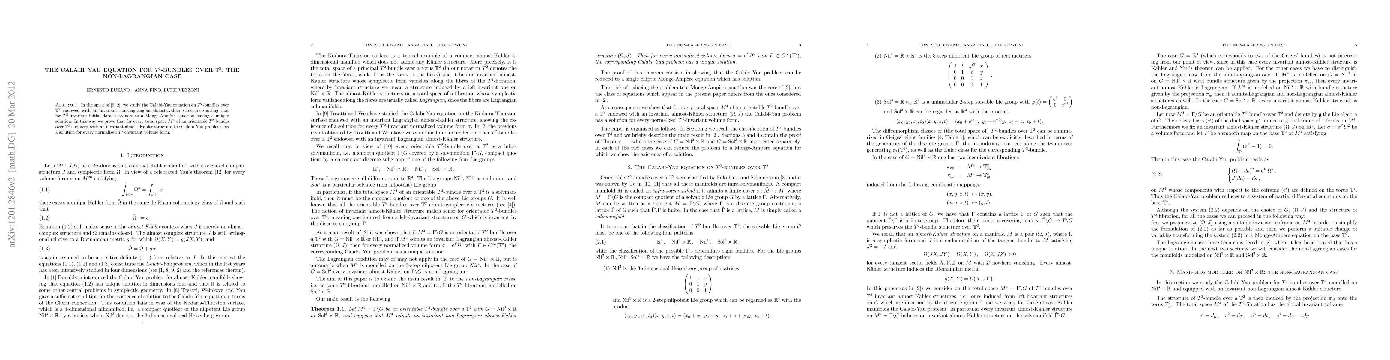 This paper investigates the Calabi-Yau equation on $T^2$-bundles over $\mathbb{T}^2$ with an invariant non-Lagrangian almost-Kähler structure, demonstrating its reduction to a Monge-Ampère equation with a unique solution. It concludes that every orientable $T^2$-bundle over $\mathbb{T}^2$ with an invariant almost-Kähler structure admits a solution for the Calabi-Yau problem for normalized $T^2$-invariant volume forms.