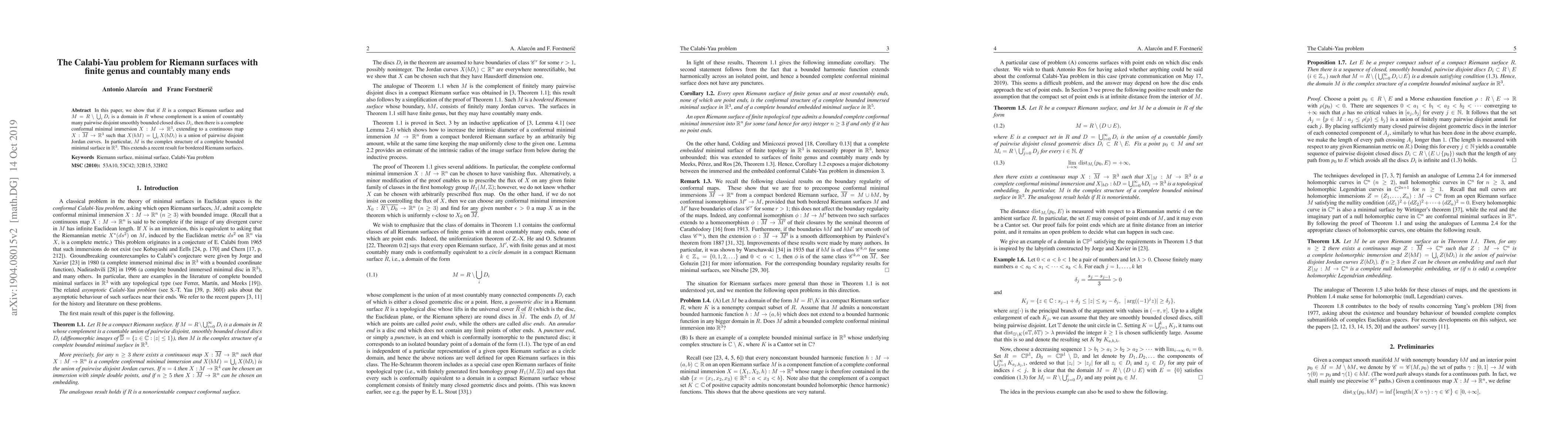 This paper demonstrates that a compact Riemann surface with countably many smoothly bounded closed discs removed can be the complex structure of a complete bounded minimal surface in $\mathbb{R}^3$. It proves the existence of a complete conformal minimal immersion extending to the boundary of the domain.
