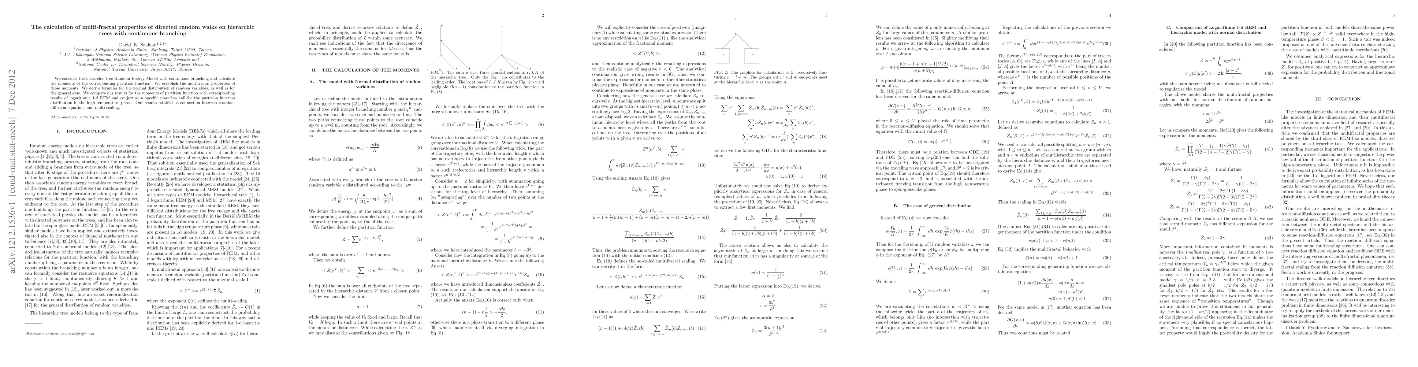 Researchers calculated multi-fractal properties of directed random walks on hierarchic trees with continuous branching, establishing a connection between reaction-diffusion equations and multi-scaling.