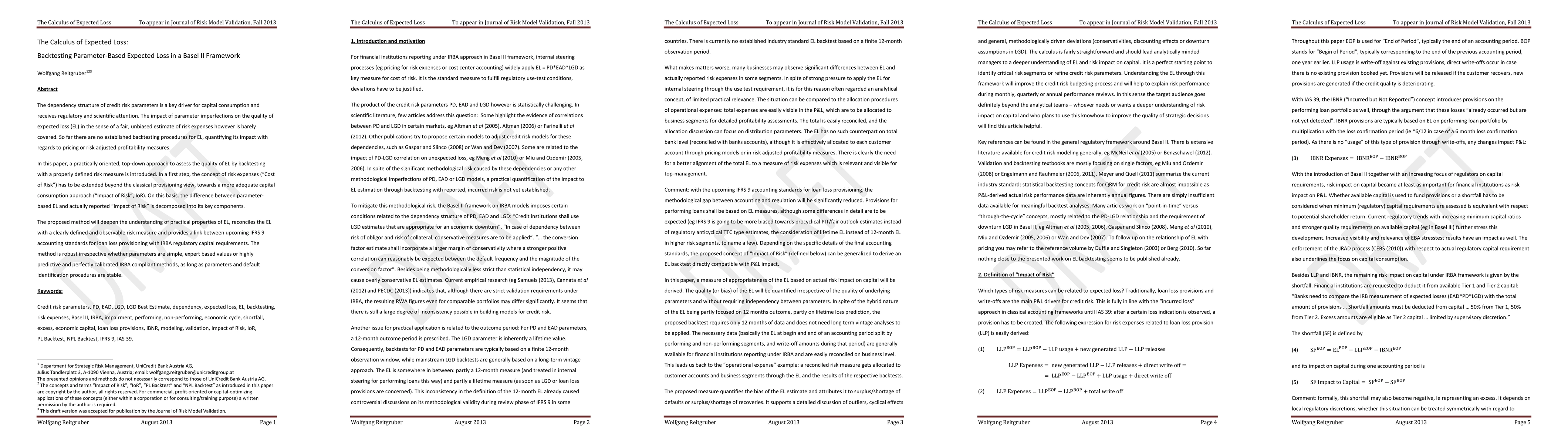The dependency structure of credit risk parameters is a key driver for capital consumption and receives regulatory and scientific attention. The impact of parameter imperfections on the quality of expected loss (EL) in the sense of a fair, unbiased estimate of risk expenses however is barely covered. So far there are no established backtesting procedures for EL, quantifying its impact with regards to pricing or risk adjusted profitability measures. In this paper, a practically oriented, top-down approach to assess the quality of EL by backtesting with a properly defined risk measure is introduced. In a first step, the concept of risk expenses (Cost of Risk) has to be extended beyond the classical provisioning view, towards a more adequate capital consumption approach (Impact of Risk, IoR). On this basis, the difference between parameter-based EL and actually reported Impact of Risk is decomposed into its key components. The proposed method will deepen the understanding of practical properties of EL, reconciles the EL with a clearly defined and observable risk measure and provides a link between upcoming IFRS 9 accounting standards for loan loss provisioning with IRBA regulatory capital requirements. The method is robust irrespective whether parameters are simple, expert based values or highly predictive and perfectly calibrated IRBA compliant methods, as long as parameters and default identification procedures are stable.