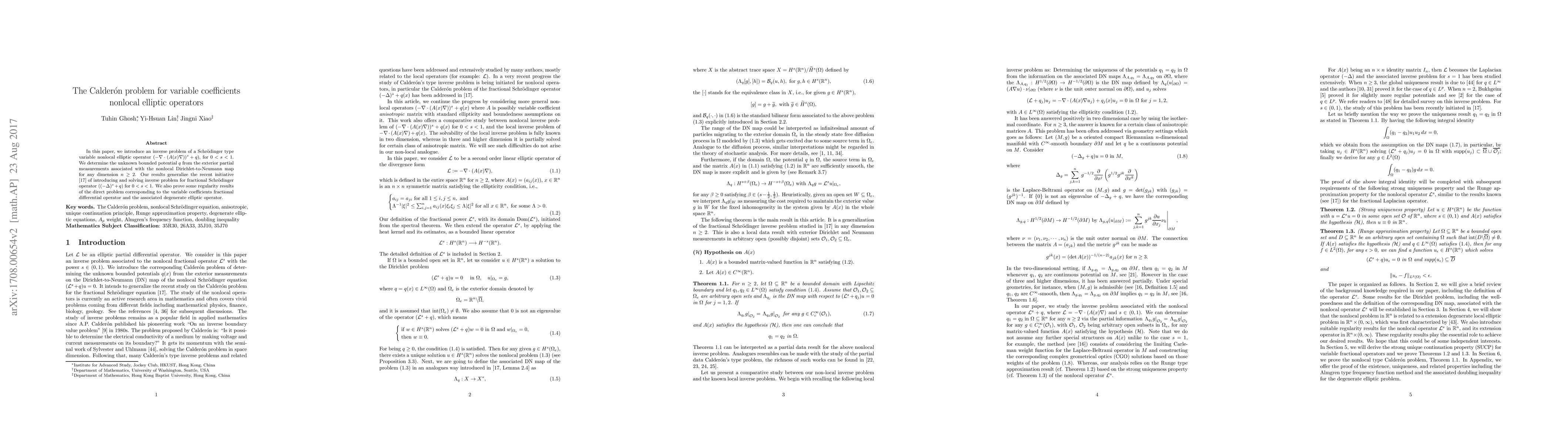 variable nonlocal elliptic operator $(-\nabla\cdot(A(x)\nabla))^{s}+q)$, for