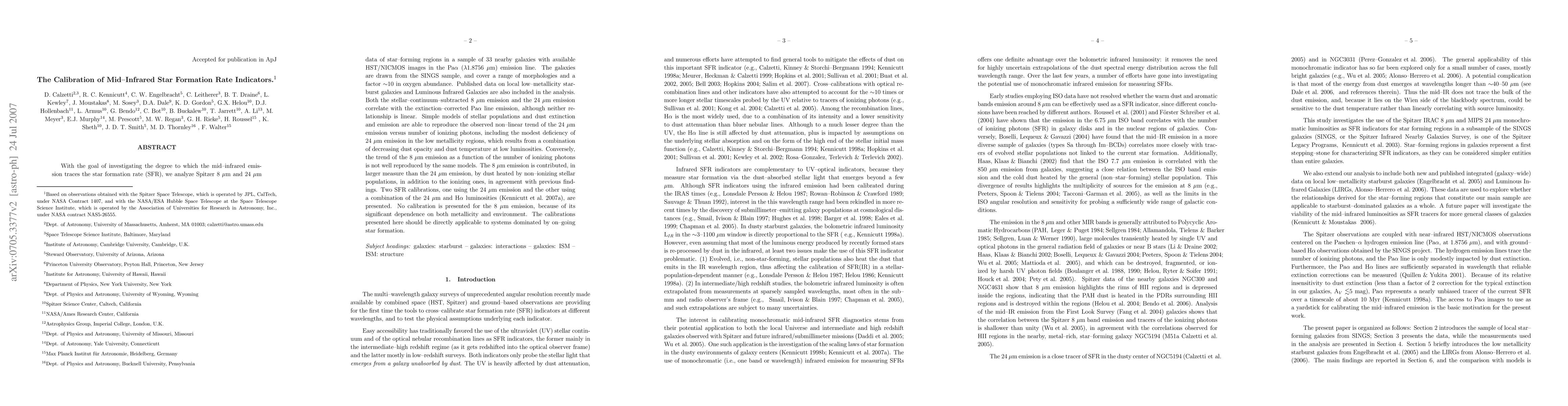 This paper investigates how mid-infrared emission correlates with star formation rates (SFR) using Spitzer data from 33 nearby galaxies. It finds that while both the 24 um and 8 um emissions correlate with SFR, only the 24 um emission provides a reliable SFR indicator, while the 8 um emission is influenced by metallicity and environment.